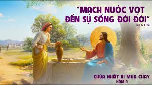 Bản văn Tin mừng hôm nay là một trong những đọan hay nhất và đẹp nhất của Tin mừng theo thánh Gioan. Ở đây ghi lại một cách thi vị và đầy tình người cuộc gặp gỡ giữa Đức Giêsu và người phụ nữ ở giếng Giacóp. Không ngờ, ban đầu Đức Giêsu xin người phụ nữ Samaria cho nước uống, rồi qua câu chuyện trao đổi, Ngài lại mạc khải cho chị ta một thứ nước uống, uống vào sẽ không bao giờ khát, đó chính là nước Trường sinh :”Ai uống nước này sẽ không bao giờ khát nữa. Và nước tôi cho sẽ trở thành nơi người ấy một mạch nước vọt lên đem lại sự sống đời đời”(Ga 4,13).