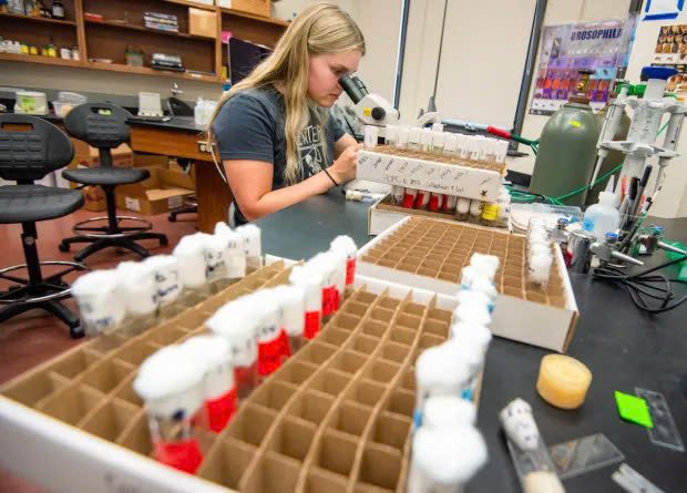 David Ronderos, phó giáo sư về sinh học tại đại học Mary ở Bismarck, đã hướng dẫn một nhóm sinh viên đại học dành 10 tuần để nghiên cứu về Drosophila melanogaster – ruồi giấm thông thường.