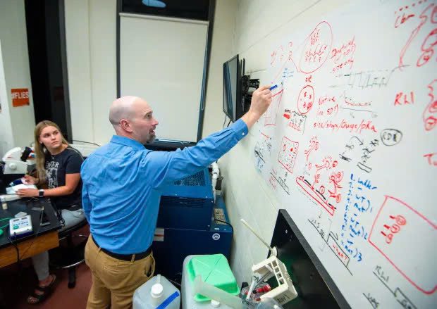 Ba sinh viên trong phòng thí nghiệm của ông ấy vào mùa hè này đã học cách thực hiện các kỹ thuật khác nhau, bao gồm điện sinh lý học, cô lập DNA và thiết kế thí nghiệm CRISPR.