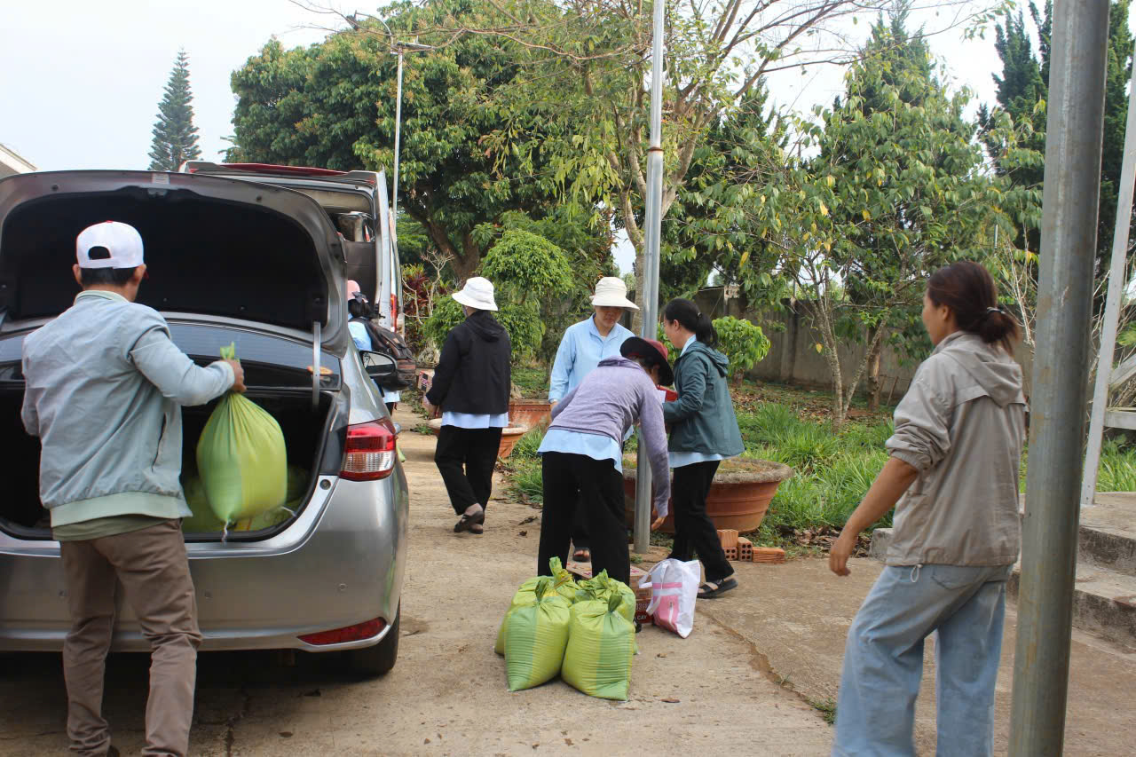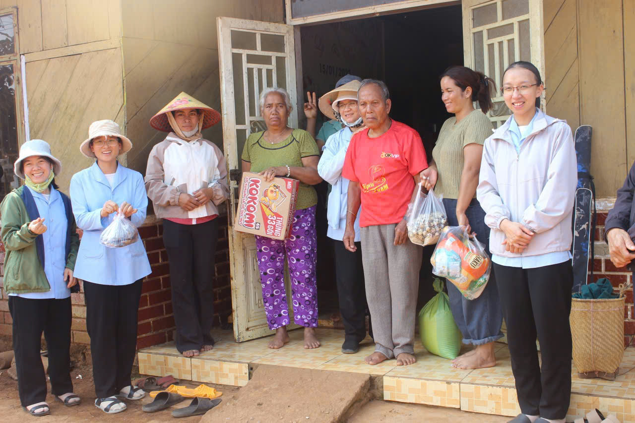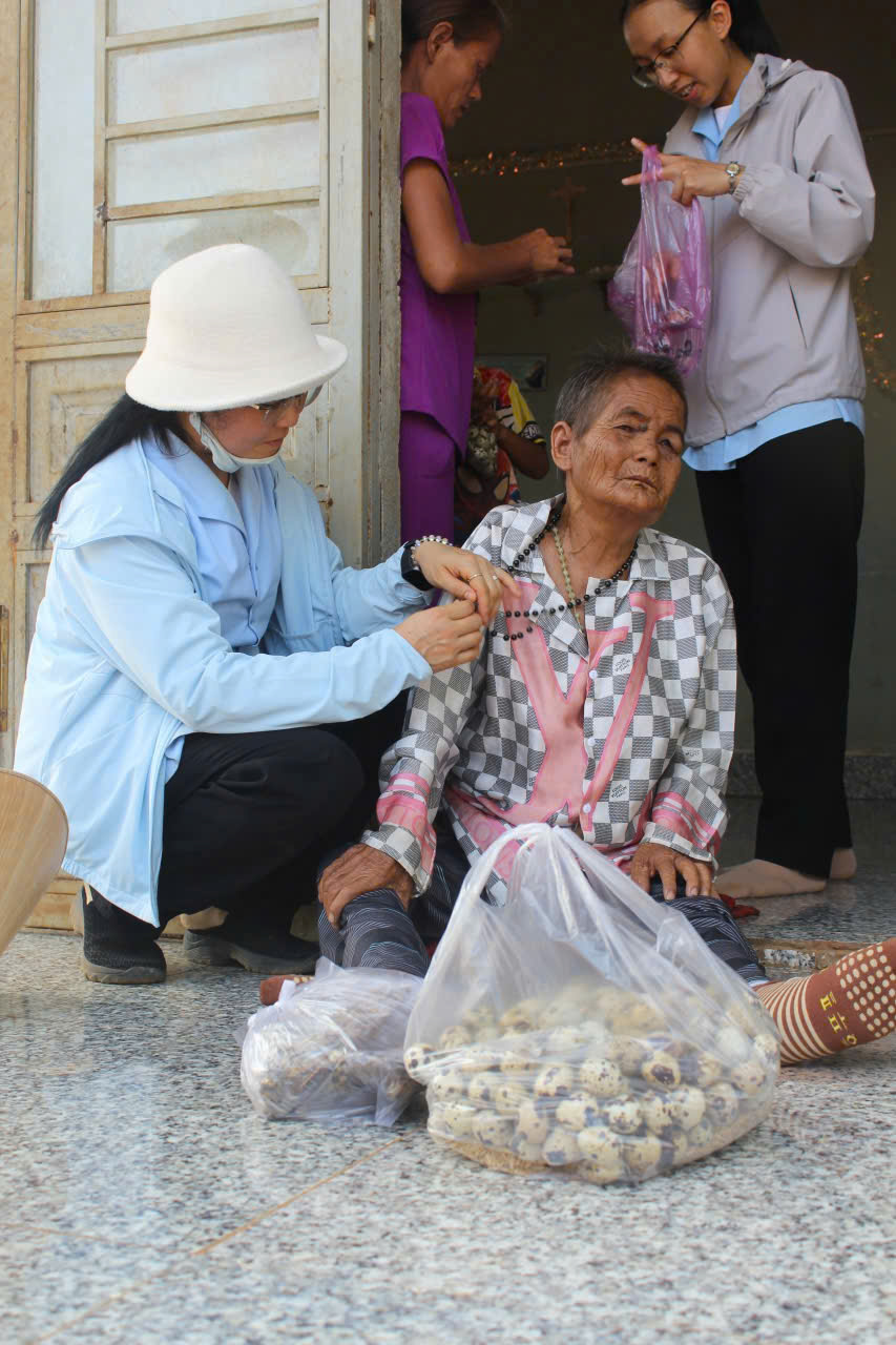 Trong bầu khí thánh thiêng của Chúa Nhật II Phục Sinh – ngày đại lễ kính Lòng Chúa Thương Xót, chị em Hội dòng Mến Thánh Giá Đà Lạt chúng con đã hăng hái lên đường hướng về Giáo sở Tân Đức – Sình Công (Liên Hà, Đức Trọng). Chuyến đi ấy không chỉ là một hành trình thiện nguyện, mà là một cuộc lên đường của đức tin, là minh chứng sống động rằng đại dương Lòng Thương Xót của Thiên Chúa vẫn luôn bao phủ và hiện diện nơi những mảnh đời cùng cực nhất. Đoàn chúng con lên đường lúc 4h30 sáng, khi sương đêm còn ôm ấp phố núi, cũng là lúc lòng chúng con rộn ràng như những người thợ gặt hăng hái ra đồng. Hình ảnh đẹp đẽ và cảm động biết bao khi nhìn thấy sự hiệp nhất không khoảng cách: từ quý Soeurs trên dưới 70 tuổi, dù “lưng đau gối mỏi” vẫn tràn đầy lửa mến, đến quý Soeurs tuổi trung niên đang tràn trào sự hăng hái và nhiệt huyết, đến các em tập sinh đang nồng cháy khát vọng hiến dâng, và cả những em học sinh nhỏ tuổi với trái tim trẻ thơ đầy ắp tình yêu. Càng ấm lòng hơn khi đồng hành cùng đoàn là những bậc phụ huynh, những người bạn trẻ đã quảng đại làm “đôi chân” qua những chuyến xe không đồng, đưa chúng con băng qua cả quãng đường dài để đến với anh chị em sắc tộc miền xa. Với tâm thế của người đi đến “vùng ngoại biên”, mang theo niềm vui Phục Sinh và hơi ấm từ Lòng Thương Xót Chúa, chúng con đã vỡ òa hạnh phúc khi nhìn thấy những ánh mắt trong veo, những nụ cười rạng rỡ của các em thiếu nhi khi đón nhận những phần quà nhỏ. Đi sâu vào buôn làng, ghé thăm từng nếp nhà, chúng con được chạm vào những nỗi đau tê tái và cả những mầm hy vọng mong manh. Qua lời thăm hỏi chân tình, qua câu kinh tiếng hát đơn sơ, chúng con cùng nài xin Chúa chúc lành cho những kiếp người khốn khó. Những cái nắm tay run rẩy của người già, những nụ cười bừng sáng trên khuôn mặt hốc hác của người bệnh tật đã trở thành niềm an ủi vô biên cho bước chân người lữ hành.