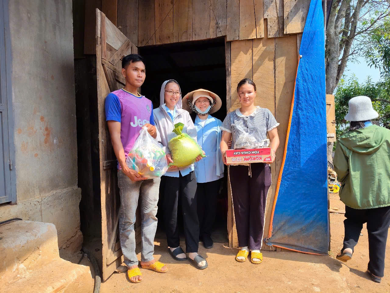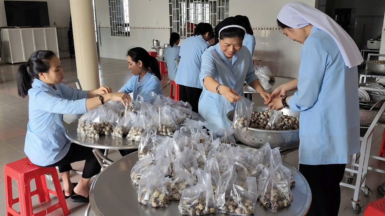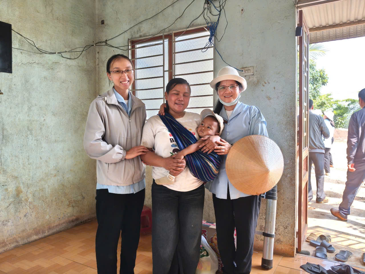 Trong bầu khí thánh thiêng của Chúa Nhật II Phục Sinh – ngày đại lễ kính Lòng Chúa Thương Xót, chị em Hội dòng Mến Thánh Giá Đà Lạt chúng con đã hăng hái lên đường hướng về Giáo sở Tân Đức – Sình Công (Liên Hà, Đức Trọng). Chuyến đi ấy không chỉ là một hành trình thiện nguyện, mà là một cuộc lên đường của đức tin, là minh chứng sống động rằng đại dương Lòng Thương Xót của Thiên Chúa vẫn luôn bao phủ và hiện diện nơi những mảnh đời cùng cực nhất. Đoàn chúng con lên đường lúc 4h30 sáng, khi sương đêm còn ôm ấp phố núi, cũng là lúc lòng chúng con rộn ràng như những người thợ gặt hăng hái ra đồng. Hình ảnh đẹp đẽ và cảm động biết bao khi nhìn thấy sự hiệp nhất không khoảng cách: từ quý Soeurs trên dưới 70 tuổi, dù “lưng đau gối mỏi” vẫn tràn đầy lửa mến, đến quý Soeurs tuổi trung niên đang tràn trào sự hăng hái và nhiệt huyết, đến các em tập sinh đang nồng cháy khát vọng hiến dâng, và cả những em học sinh nhỏ tuổi với trái tim trẻ thơ đầy ắp tình yêu. Càng ấm lòng hơn khi đồng hành cùng đoàn là những bậc phụ huynh, những người bạn trẻ đã quảng đại làm “đôi chân” qua những chuyến xe không đồng, đưa chúng con băng qua cả quãng đường dài để đến với anh chị em sắc tộc miền xa. Với tâm thế của người đi đến “vùng ngoại biên”, mang theo niềm vui Phục Sinh và hơi ấm từ Lòng Thương Xót Chúa, chúng con đã vỡ òa hạnh phúc khi nhìn thấy những ánh mắt trong veo, những nụ cười rạng rỡ của các em thiếu nhi khi đón nhận những phần quà nhỏ. Đi sâu vào buôn làng, ghé thăm từng nếp nhà, chúng con được chạm vào những nỗi đau tê tái và cả những mầm hy vọng mong manh. Qua lời thăm hỏi chân tình, qua câu kinh tiếng hát đơn sơ, chúng con cùng nài xin Chúa chúc lành cho những kiếp người khốn khó. Những cái nắm tay run rẩy của người già, những nụ cười bừng sáng trên khuôn mặt hốc hác của người bệnh tật đã trở thành niềm an ủi vô biên cho bước chân người lữ hành.