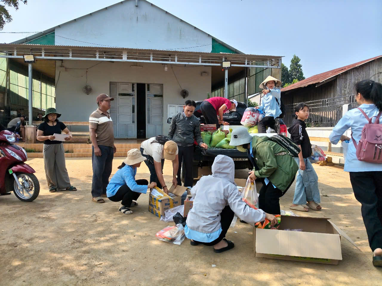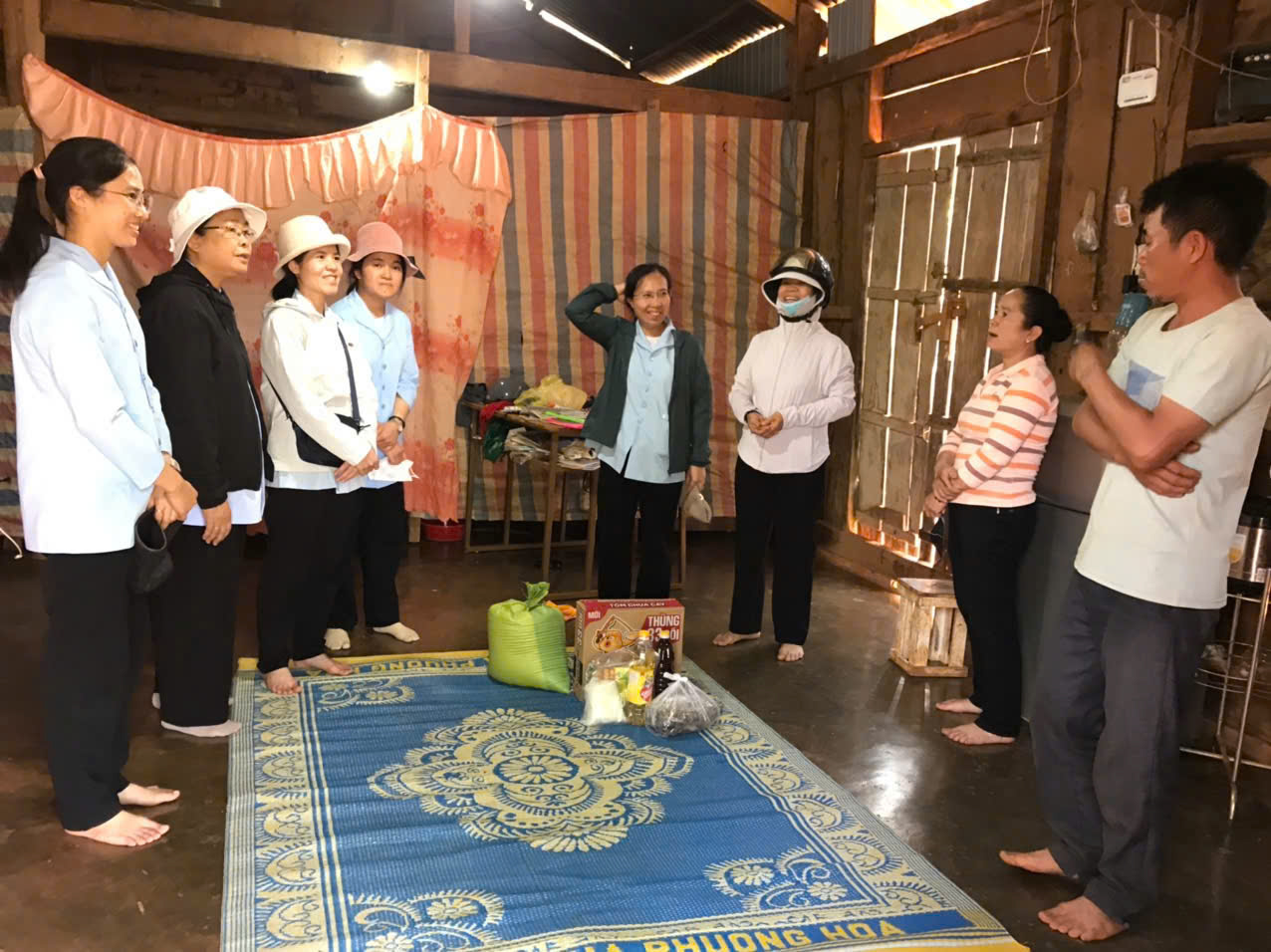 Thế nhưng, hành trình cũng dừng lại ở một khoảng lặng nghẹn ngào khi chúng con lỡ hẹn với chị Maria – người phụ nữ sắc tộc trẻ tuổi đang chiến đấu với bạo bệnh. Khi đoàn vừa đến nơi, cũng là lúc linh cữu chị đã được gia đình và làng xóm đưa đến nơi an nghỉ cuối cùng. Đứng trước di ảnh người phụ nữ hiền hậu xinh xắn ra đi khi tuổi đời còn quá trẻ, nhìn đứa con thơ mới lên ba vẫn còn ngây thơ trên vai bà ngoại, lòng chúng con thắt lại vì xót xa. Chỉ kịp thắp nén hương lòng, dâng lời kinh thiết tha và sẻ chia nỗi đau cùng tang quyến, chúng con chợt nhận ra tình người là không biên giới. Những giọt nước mắt lăn dài trên gương mặt của cả những anh chị em không cùng tôn giáo khi chúng con ghé thăm đã minh chứng cho sức mạnh của sự thấu cảm và lòng trắc ẩn. Chúng con xin tạ ơn Chúa đã gìn giữ đoàn trong bình an. Xin tri ân Cha Giuse quản nhiệm, quý Soeur dòng Chứng Nhân Đức Tin, quý Hội đồng Mục vụ, ban Caritas và hội Hiền Mẫu đã chẳng quản ngại nắng nôi oi ả, ân cần dẫn lối và trao gửi chúng con bữa trưa ấm áp tình thân. Dù mệt nhoài dưới cái nắng miền cao, nhưng nụ cười vẫn nở tươi trên môi từng người, bởi chúng con hiểu rằng mình đang được yêu và được trở nên cánh tay nối dài của Chúa. Xin gửi lời tri ân sâu sắc đến Quý Mạnh Thường Quân đã âm thầm hy sinh, cầu nguyện và tạo điều kiện cho chúng con có cơ hội đến đây để thi thố Lòng Thương Xót của Thiên Chúa. Ước mong sao, qua sự hiện diện bé nhỏ này, những tâm hồn trẻ thơ và những gia đình khó khan nơi đây sẽ chạm được được sự ngọt ngào của tình yêu Thiên Chúa và sẽ cảm nghiệm Lòng Thương Xót vô bờ của Thiên Chúa, để từ sâu thẳm tâm hồn, mỗi người đều có thể thốt lên lời cầu nguyện: “Lạy Chúa Giêsu, con tín thác vào Chúa”.