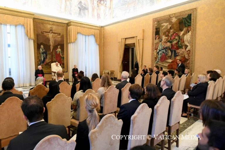Hôm qua, quý vị đã ký kết ‘Hiến Chương Solfagnano’, thành quả của công việc của quý vị về những vấn đề cơ bản như sự hoà nhập, khả năng tiếp cận, việc sống tự lập và trao quyền cho mọi người. Những đề tài này cũng hiện diện trong cái nhìn của Giáo Hội về phẩm giá con người. Thật vậy, mỗi người là một phần không thể thiếu của gia đình nhân loại phổ quát, và không ai phải trở thành nạn nhân của một nền văn hoá vứt bỏ, tuyệt đối không một ai. Loại văn hoá này sinh ra định kiến và huỷ hoại xã hội.