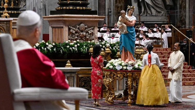Các tín hữu đại diện các châu lục thắp sáng các ngọn nến bằng ngọn lửa được lấy từ Ngọn đèn Hòa bình ở Assisi   (@Vatican Media)