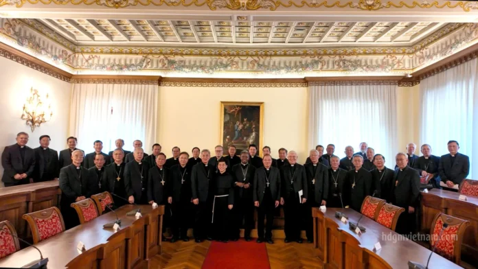 Tiếp tục hành trình Ad Limina Apostolorum, thứ Tư ngày 22/4/2026, phái đoàn Hội đồng Giám mục Việt Nam (HĐGMVN) đã chào thăm Bộ Giáo sĩ và Bộ Truyền giáo, và cùng dâng Thánh lễ tại Đền thờ Thánh Phaolô Ngoại Thành – một ngày thấm đẫm bầu khí cầu nguyện, hiệp thông và trao đổi mục vụ.