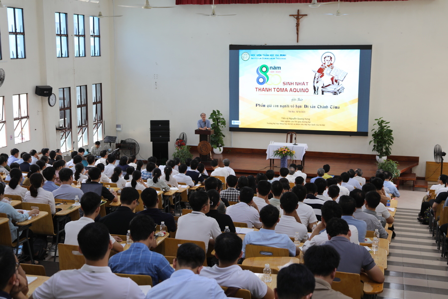 Sáng ngày 18/10/2025. Nhân kỷ niệm 800 năm sinh nhật thánh Tôma Aquinô (1225–2025), Học viện Thần học Đa Minh tổ chức hội thảo chuyên đề “Phẩm giá con người vô hạn: Di sản thánh Tôma”, sự kiện quy tụ đông đảo quý linh mục, tu sĩ, học giả và sinh viên thần học tham dự.