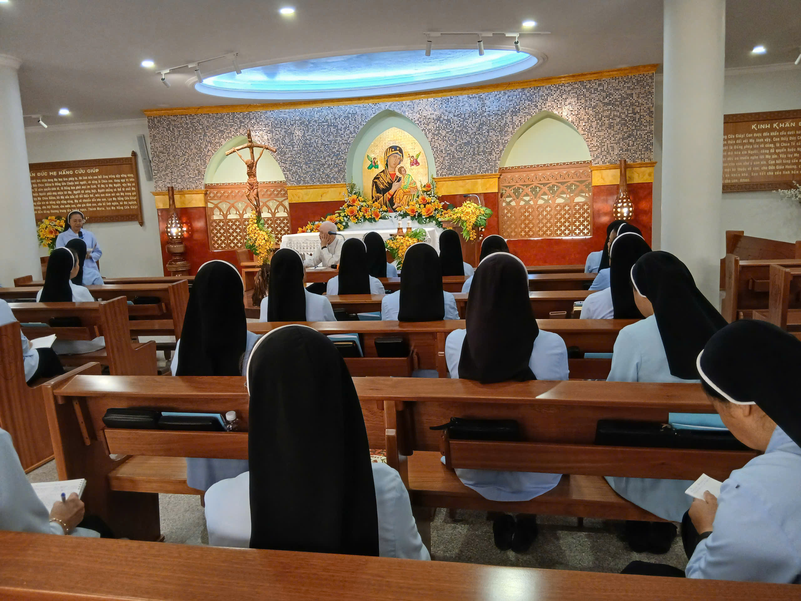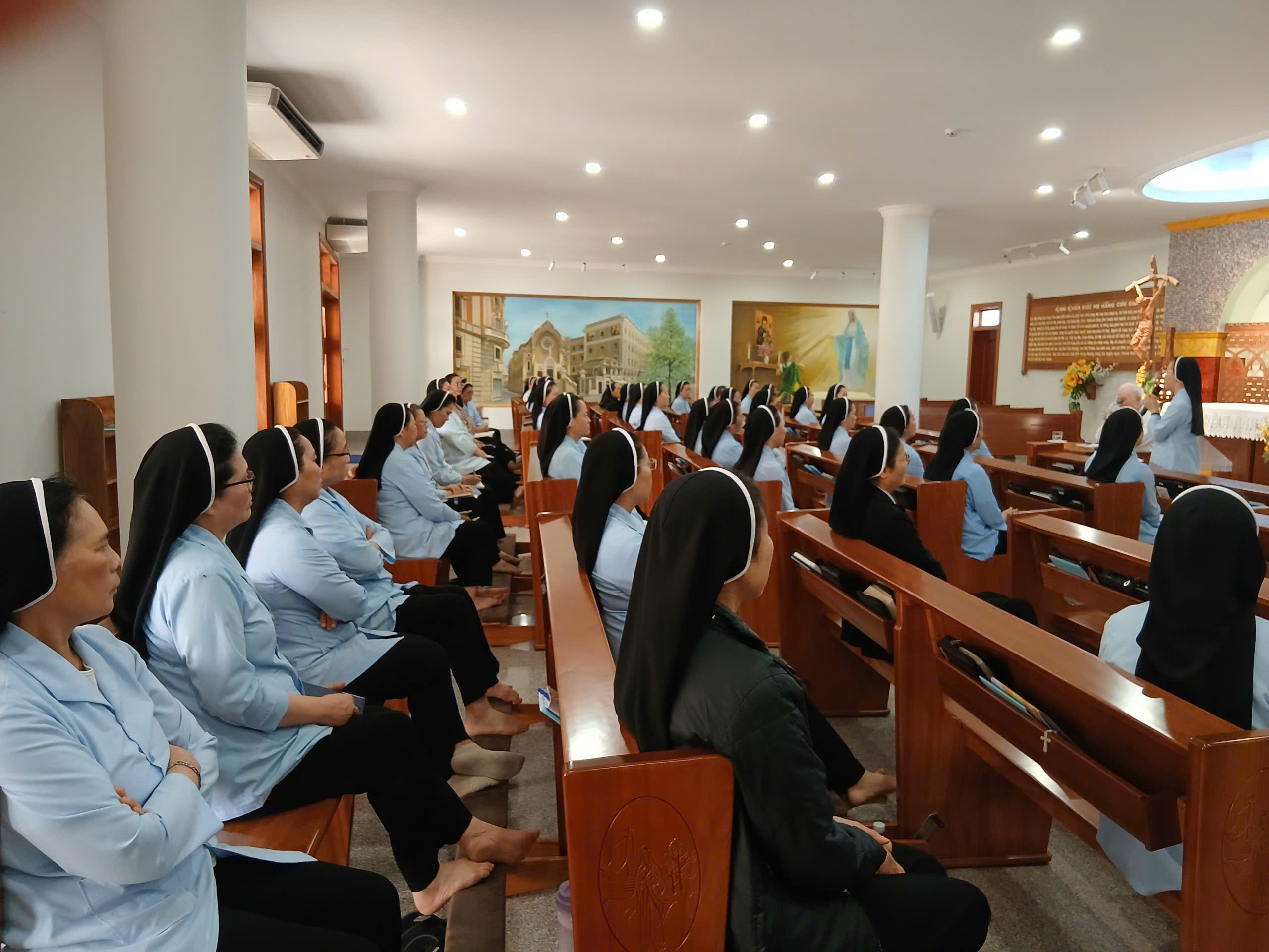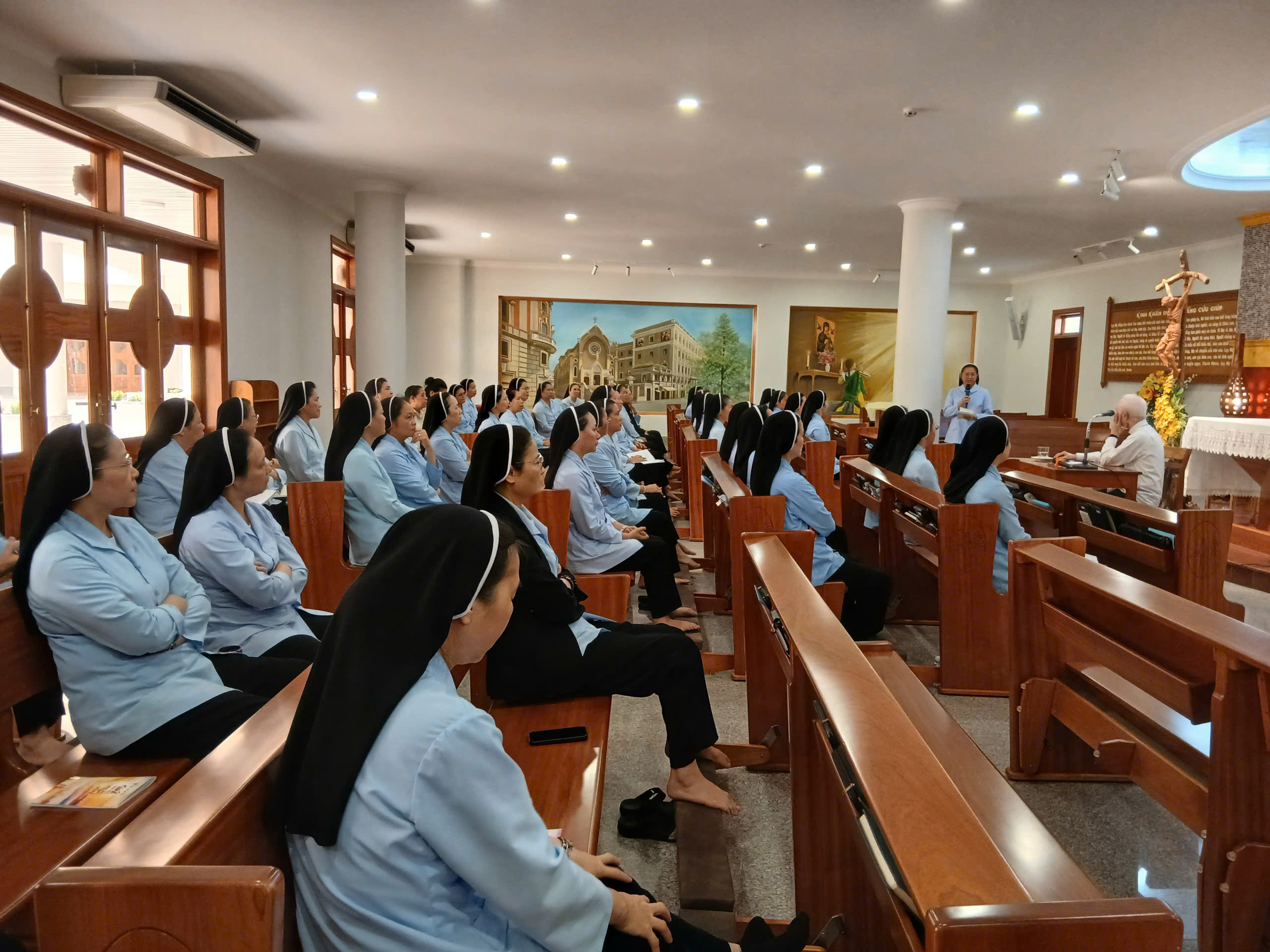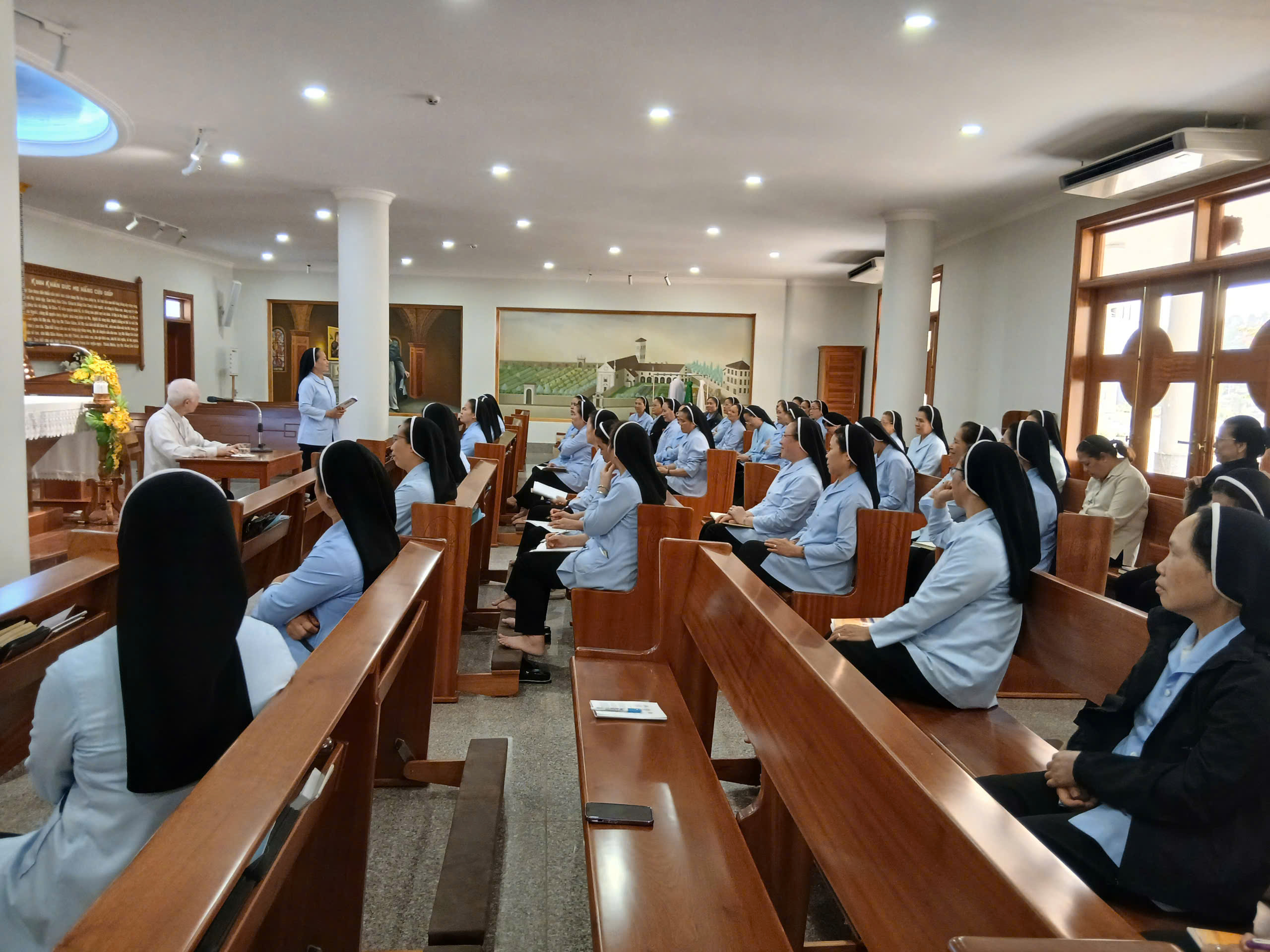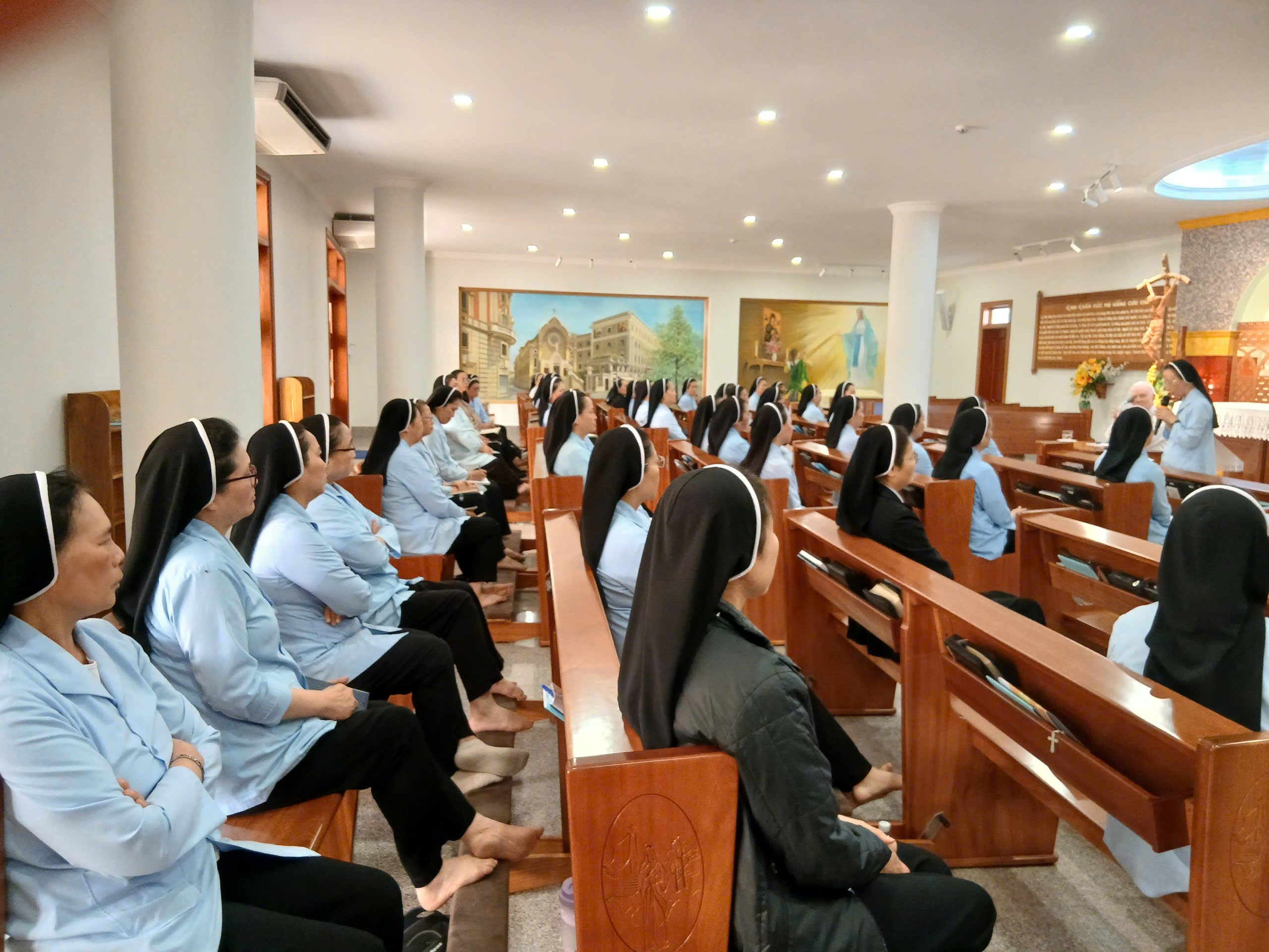 Như một sự tình cờ nhưng cũng đầy ý nghĩa, trong thánh lễ khai mạc, Đức Cha đã giúp chị em suy tư dựa trên đoạn Lời Chúa nói về hình ảnh cái đèn: “Có ai đem đèn sáng đặt trong thùng hay dưới gầm giường chăng? Chẳng phải là để đặt trên giá đèn sao?” (Mc 4, 21-25). Vâng, để được là những chiếc đèn, mỗi chúng ta phải được thắp sáng, được ấm nóng bởi Lời Chúa. Hơn thế nữa, chiếc đèn chỉ có giá trị khi nó được đặt trên giá để tỏa sáng, soi chiếu những người chung quanh. Cũng vậy, đời thánh hiến của quý chị phải tươi đẹp, phải rực rỡ, “tròn đầy” mới thật là một ngọn đèn đúng nghĩa; cụ thể, đèn của những người có trách nhiệm lại càng phải sáng, càng phải “đặt trên giá” để soi sáng và truyền cảm hứng cho những người mình có trách nhiệm.