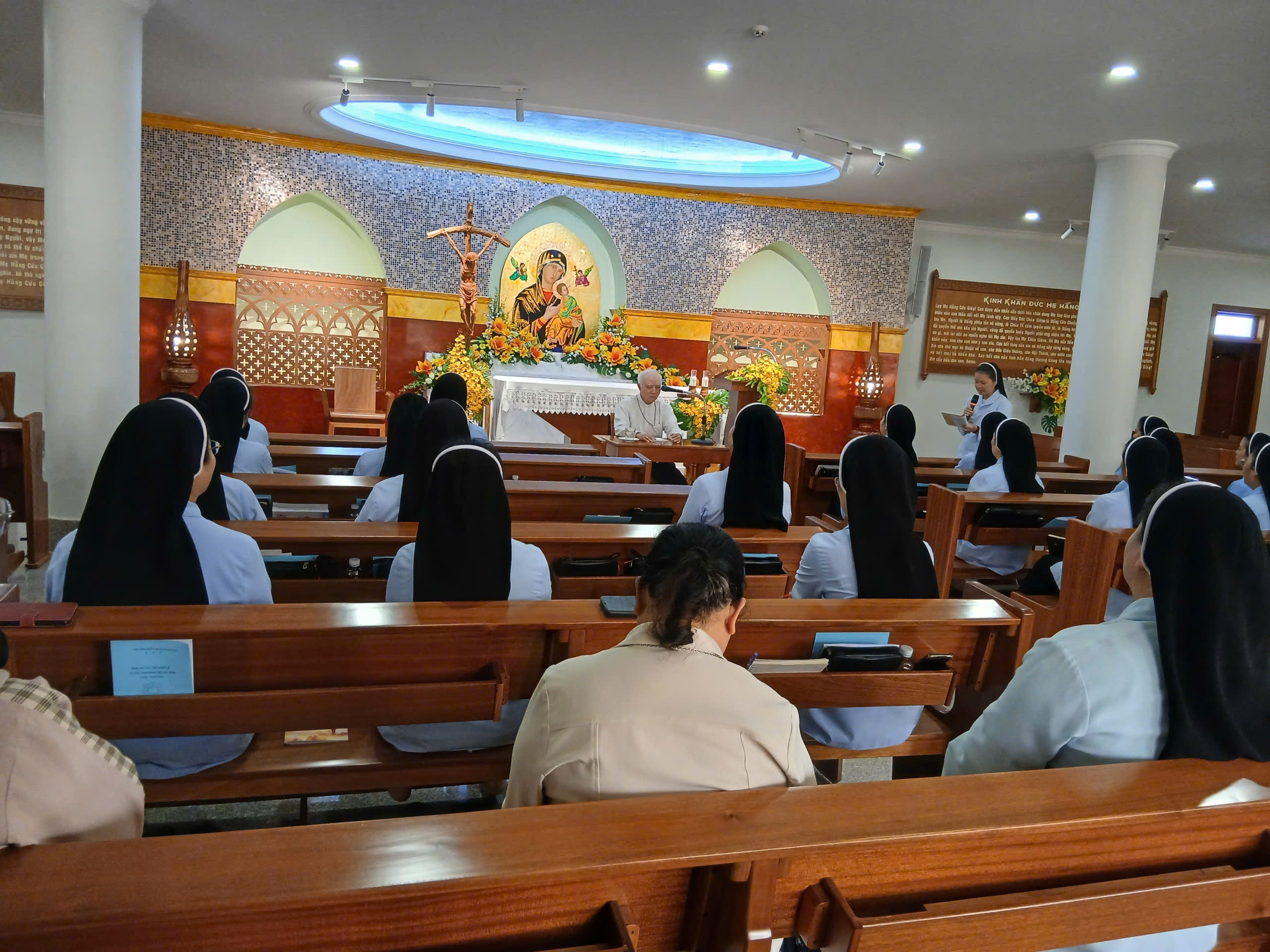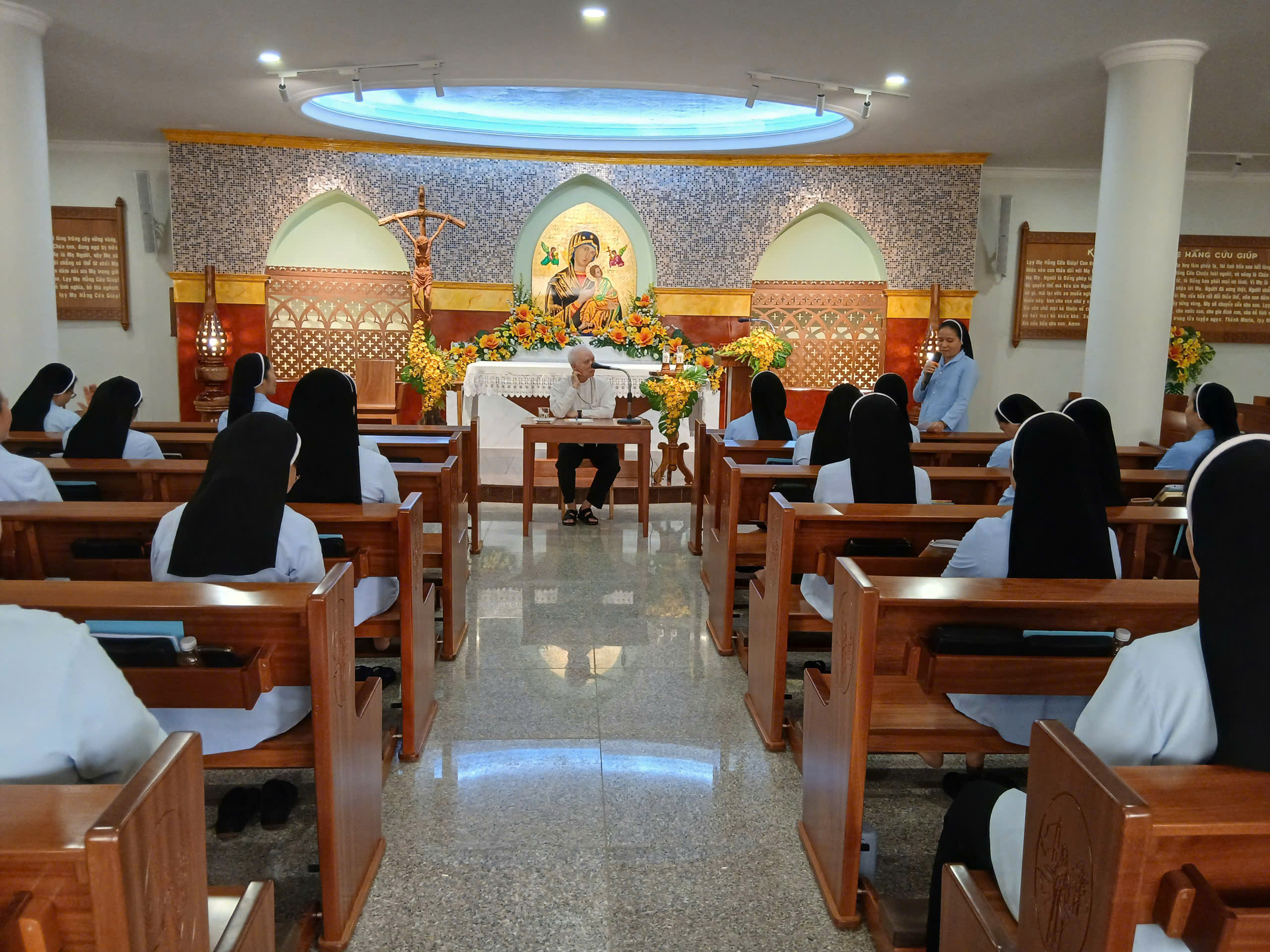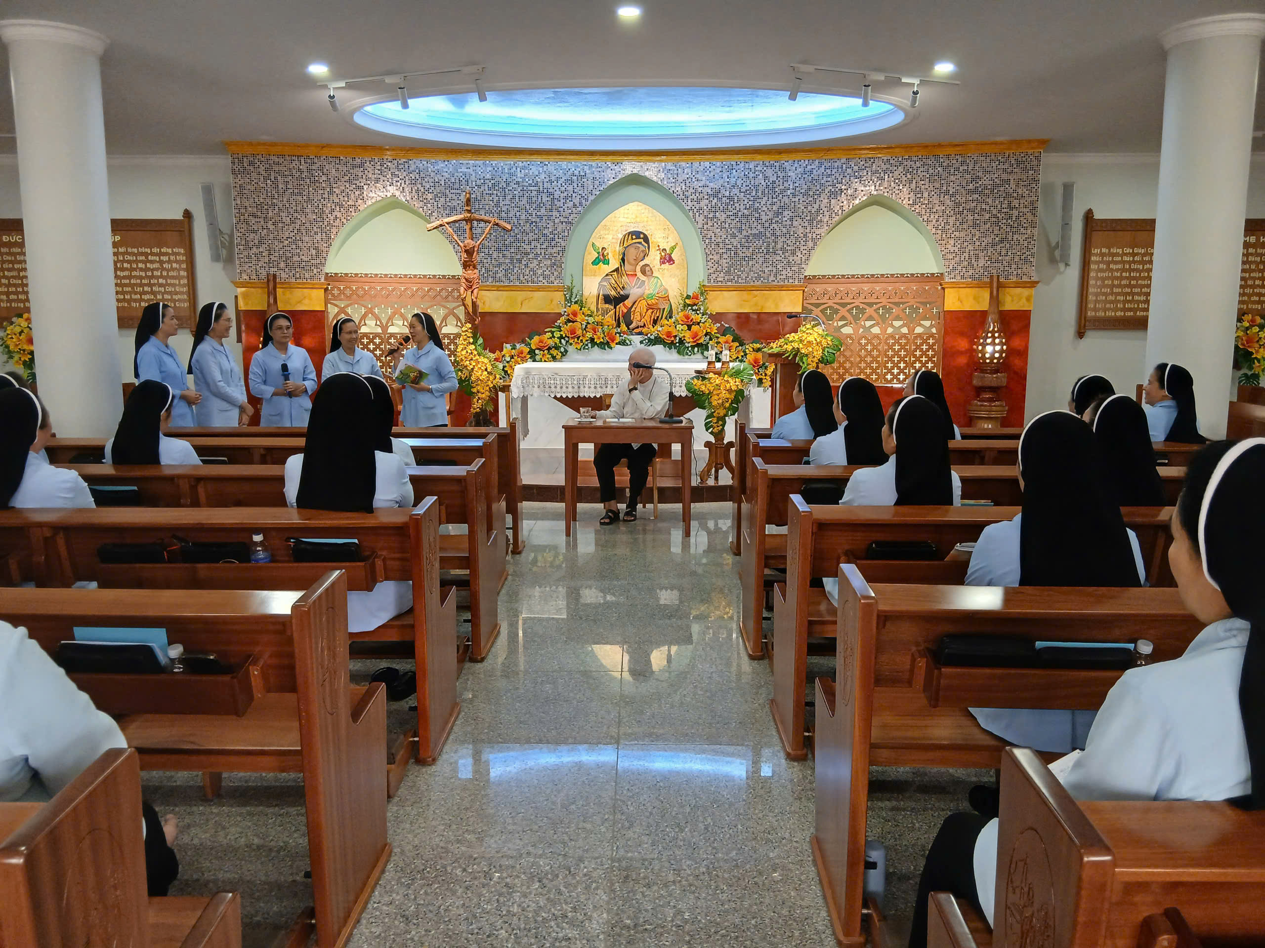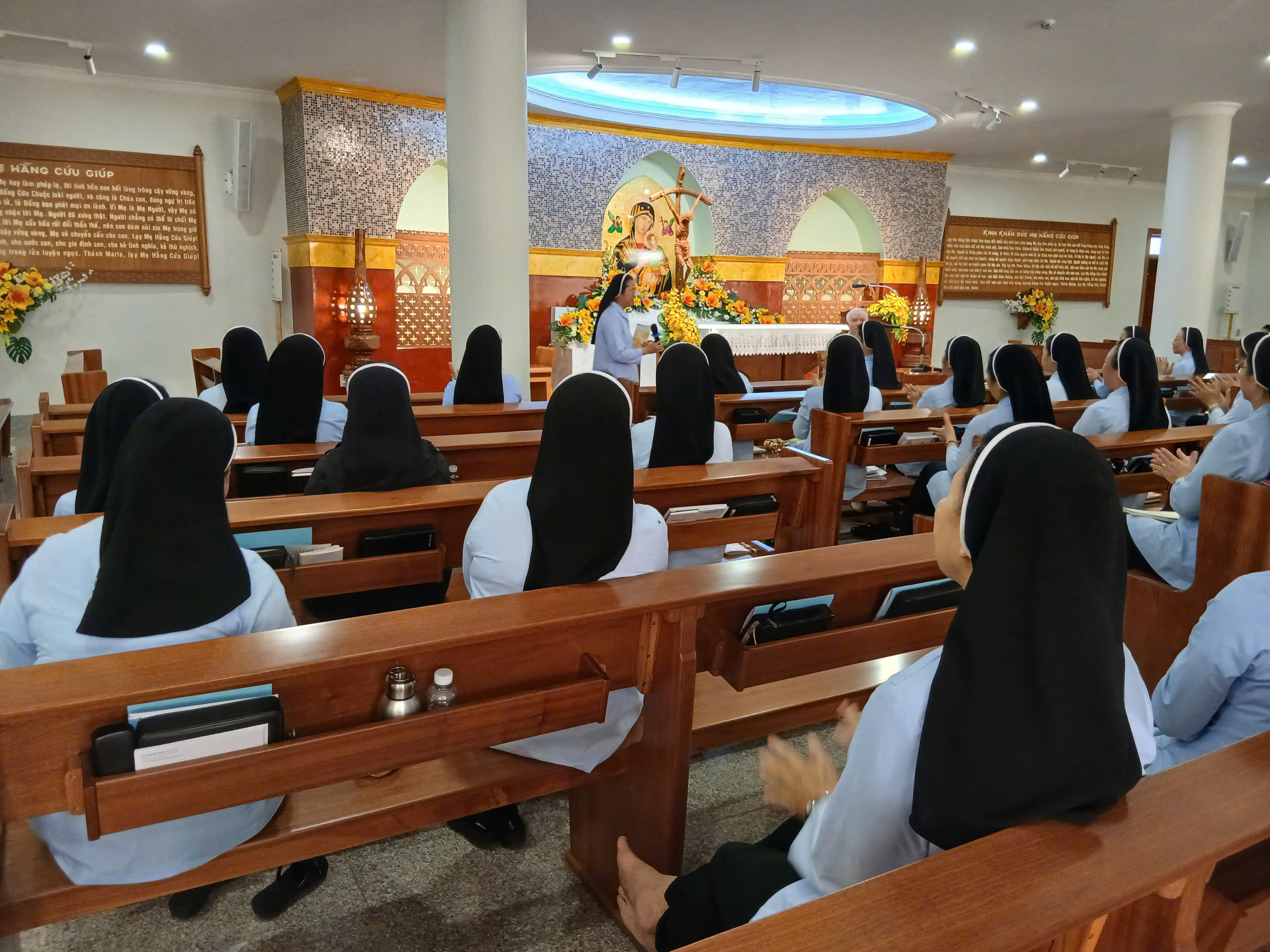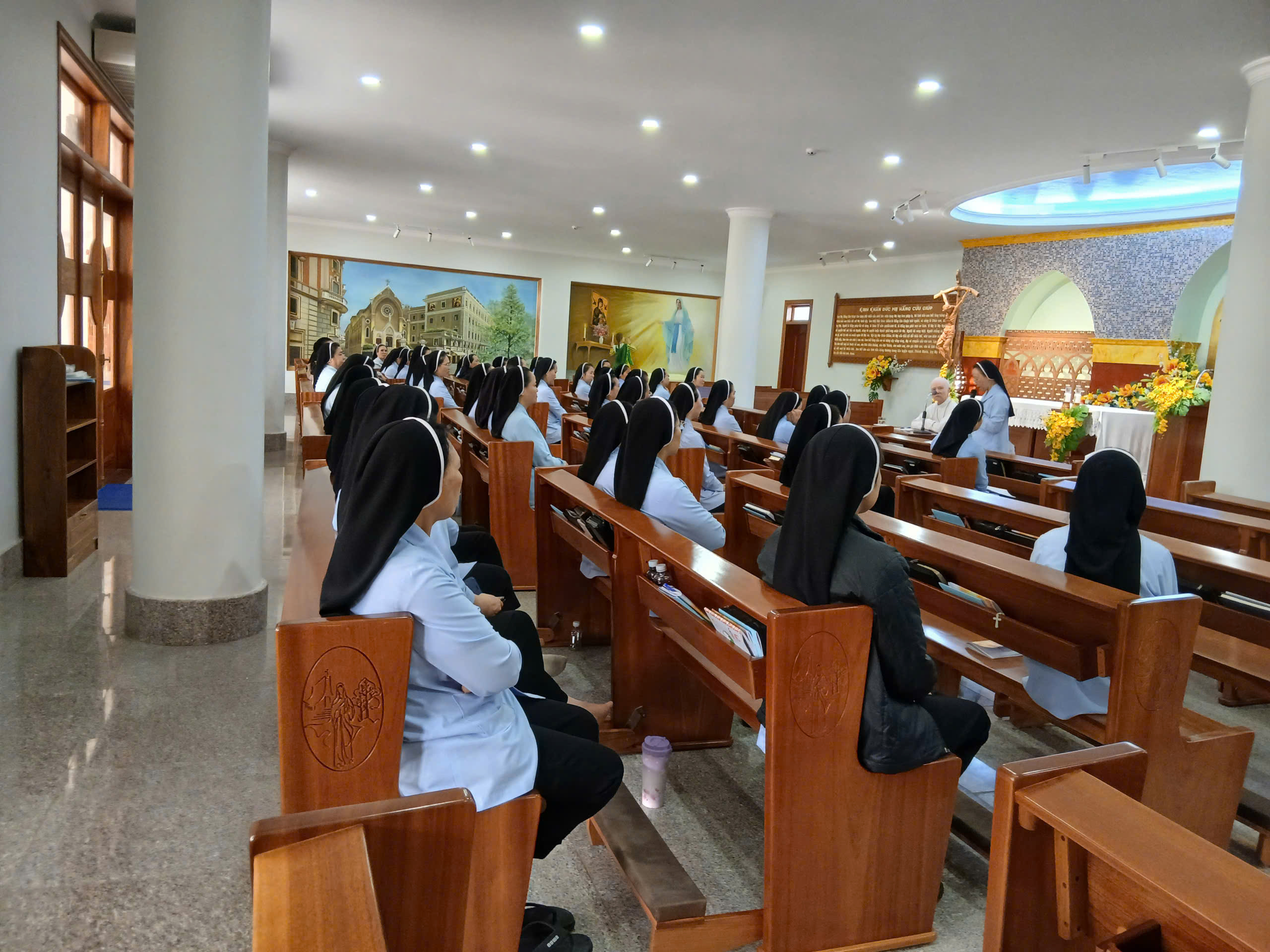 Như một sự tình cờ nhưng cũng đầy ý nghĩa, trong thánh lễ khai mạc, Đức Cha đã giúp chị em suy tư dựa trên đoạn Lời Chúa nói về hình ảnh cái đèn: “Có ai đem đèn sáng đặt trong thùng hay dưới gầm giường chăng? Chẳng phải là để đặt trên giá đèn sao?” (Mc 4, 21-25). Vâng, để được là những chiếc đèn, mỗi chúng ta phải được thắp sáng, được ấm nóng bởi Lời Chúa. Hơn thế nữa, chiếc đèn chỉ có giá trị khi nó được đặt trên giá để tỏa sáng, soi chiếu những người chung quanh. Cũng vậy, đời thánh hiến của quý chị phải tươi đẹp, phải rực rỡ, “tròn đầy” mới thật là một ngọn đèn đúng nghĩa; cụ thể, đèn của những người có trách nhiệm lại càng phải sáng, càng phải “đặt trên giá” để soi sáng và truyền cảm hứng cho những người mình có trách nhiệm.