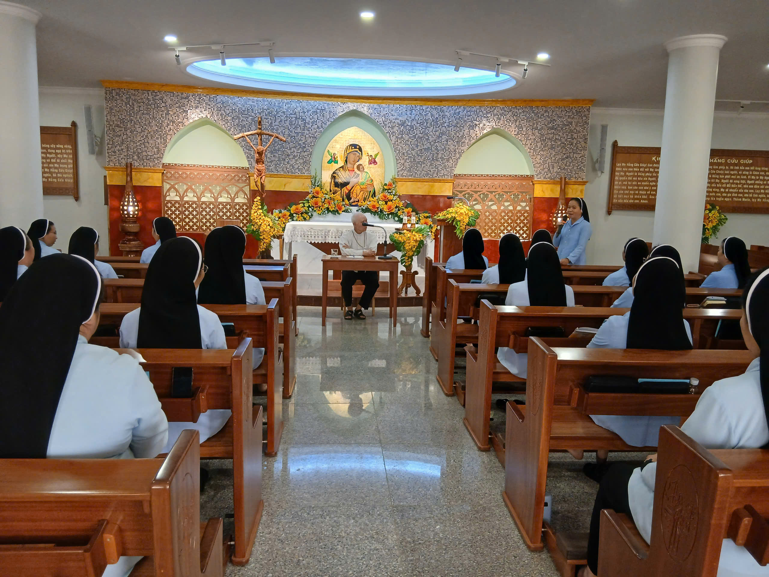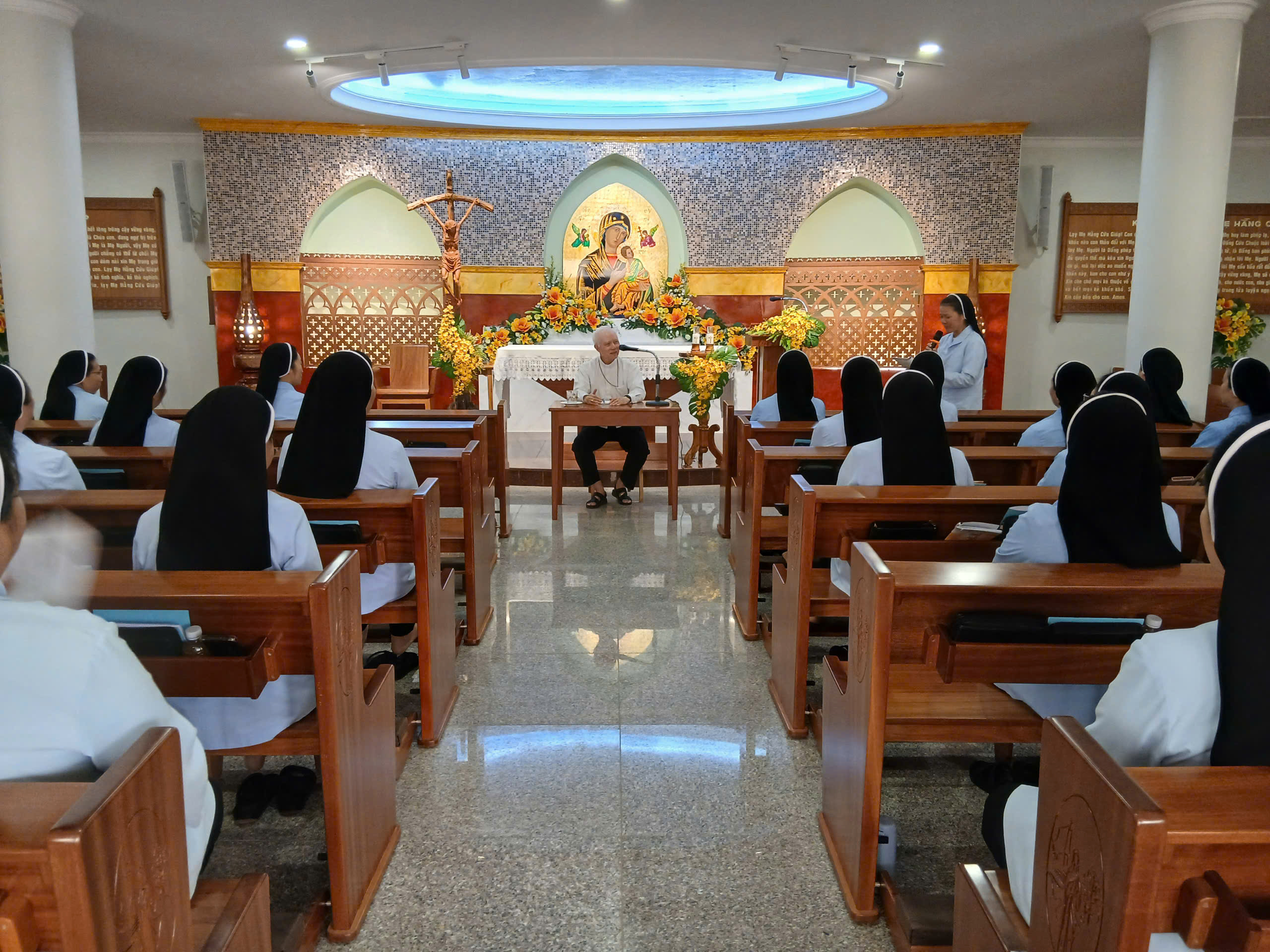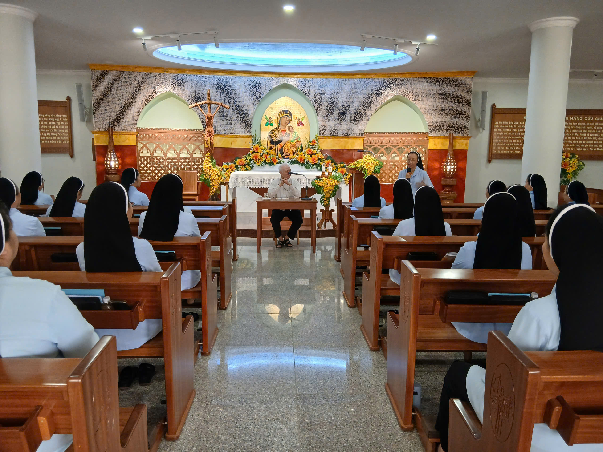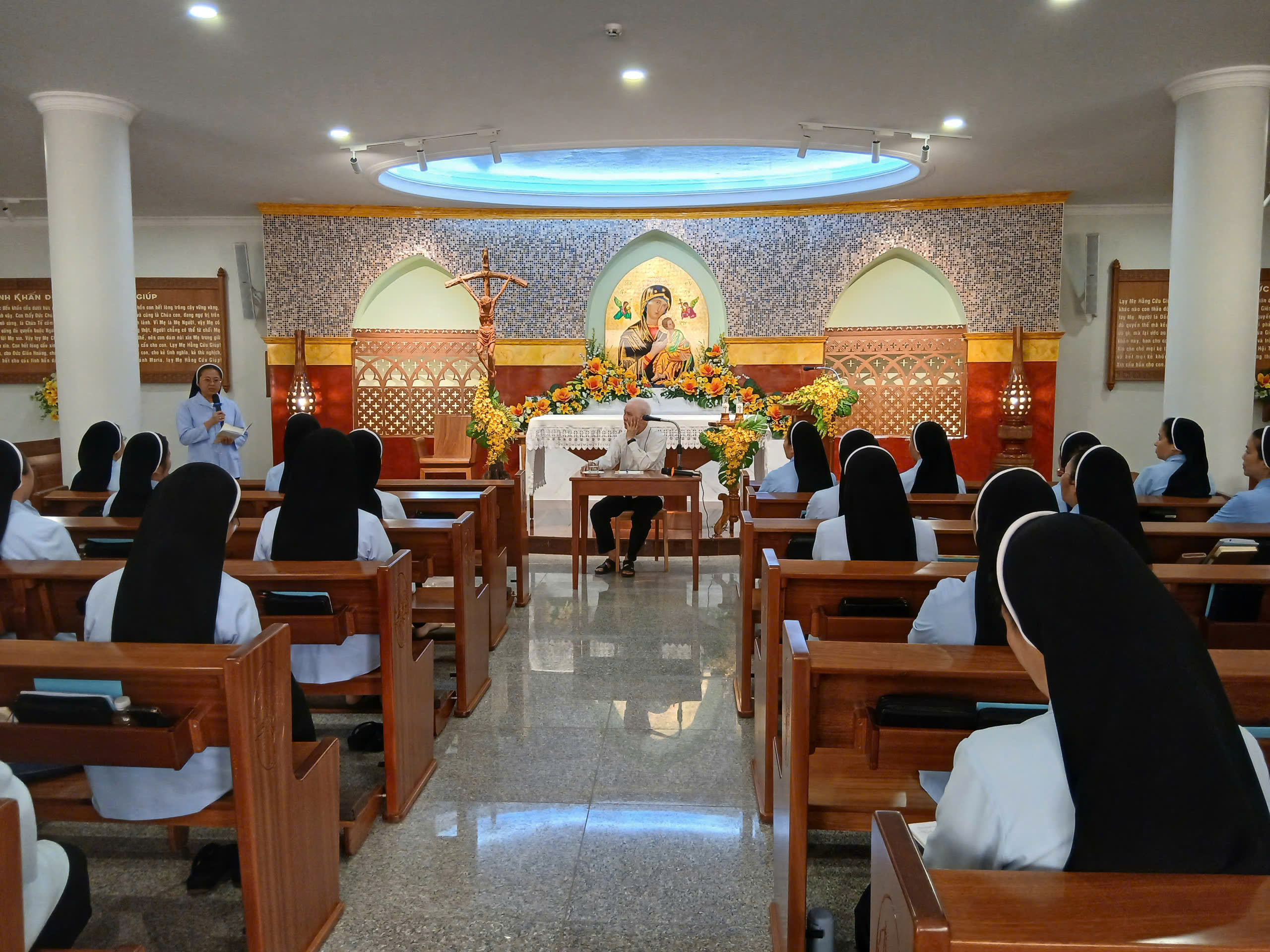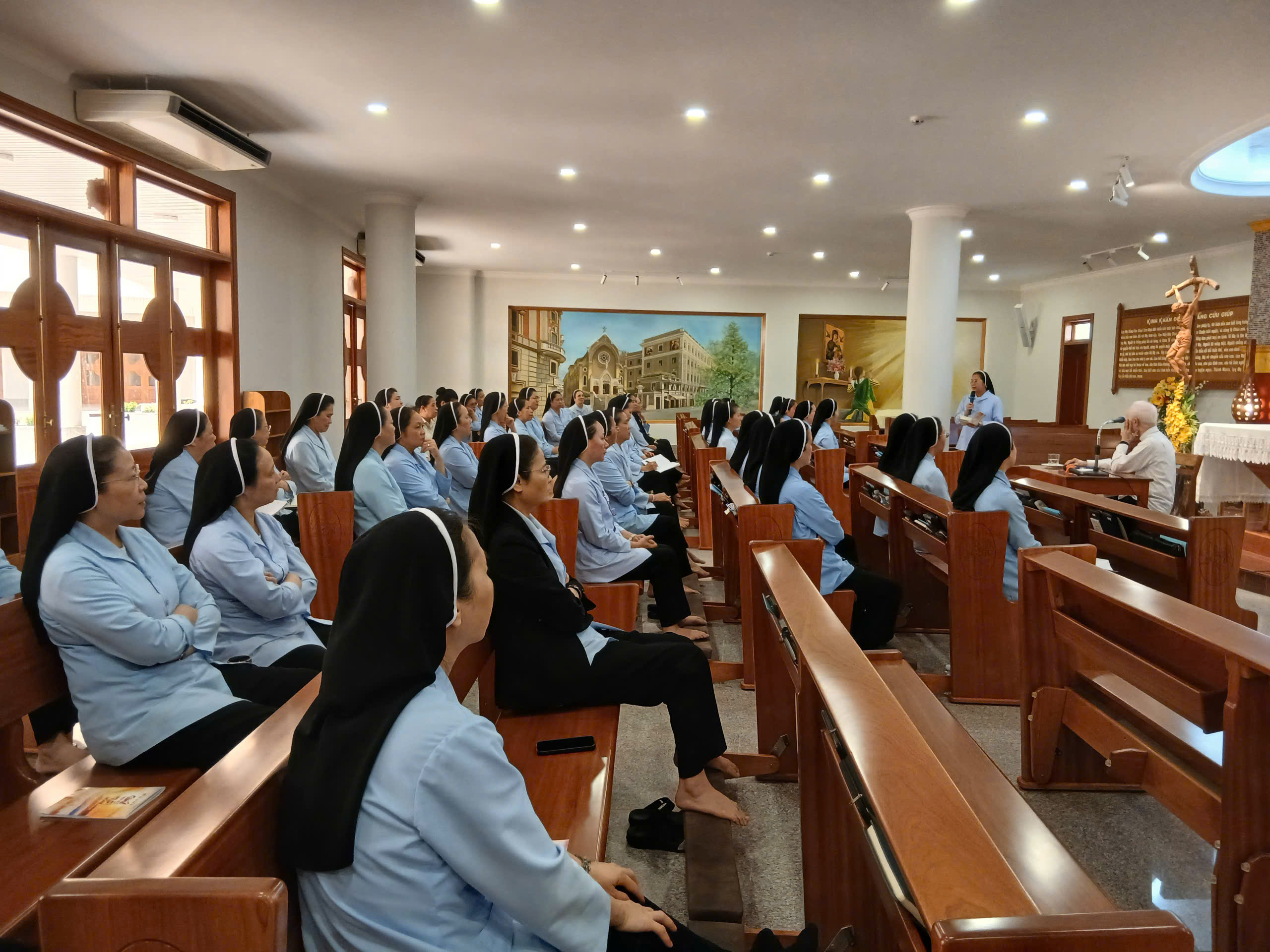 Như một sự tình cờ nhưng cũng đầy ý nghĩa, trong thánh lễ khai mạc, Đức Cha đã giúp chị em suy tư dựa trên đoạn Lời Chúa nói về hình ảnh cái đèn: “Có ai đem đèn sáng đặt trong thùng hay dưới gầm giường chăng? Chẳng phải là để đặt trên giá đèn sao?” (Mc 4, 21-25). Vâng, để được là những chiếc đèn, mỗi chúng ta phải được thắp sáng, được ấm nóng bởi Lời Chúa. Hơn thế nữa, chiếc đèn chỉ có giá trị khi nó được đặt trên giá để tỏa sáng, soi chiếu những người chung quanh. Cũng vậy, đời thánh hiến của quý chị phải tươi đẹp, phải rực rỡ, “tròn đầy” mới thật là một ngọn đèn đúng nghĩa; cụ thể, đèn của những người có trách nhiệm lại càng phải sáng, càng phải “đặt trên giá” để soi sáng và truyền cảm hứng cho những người mình có trách nhiệm.