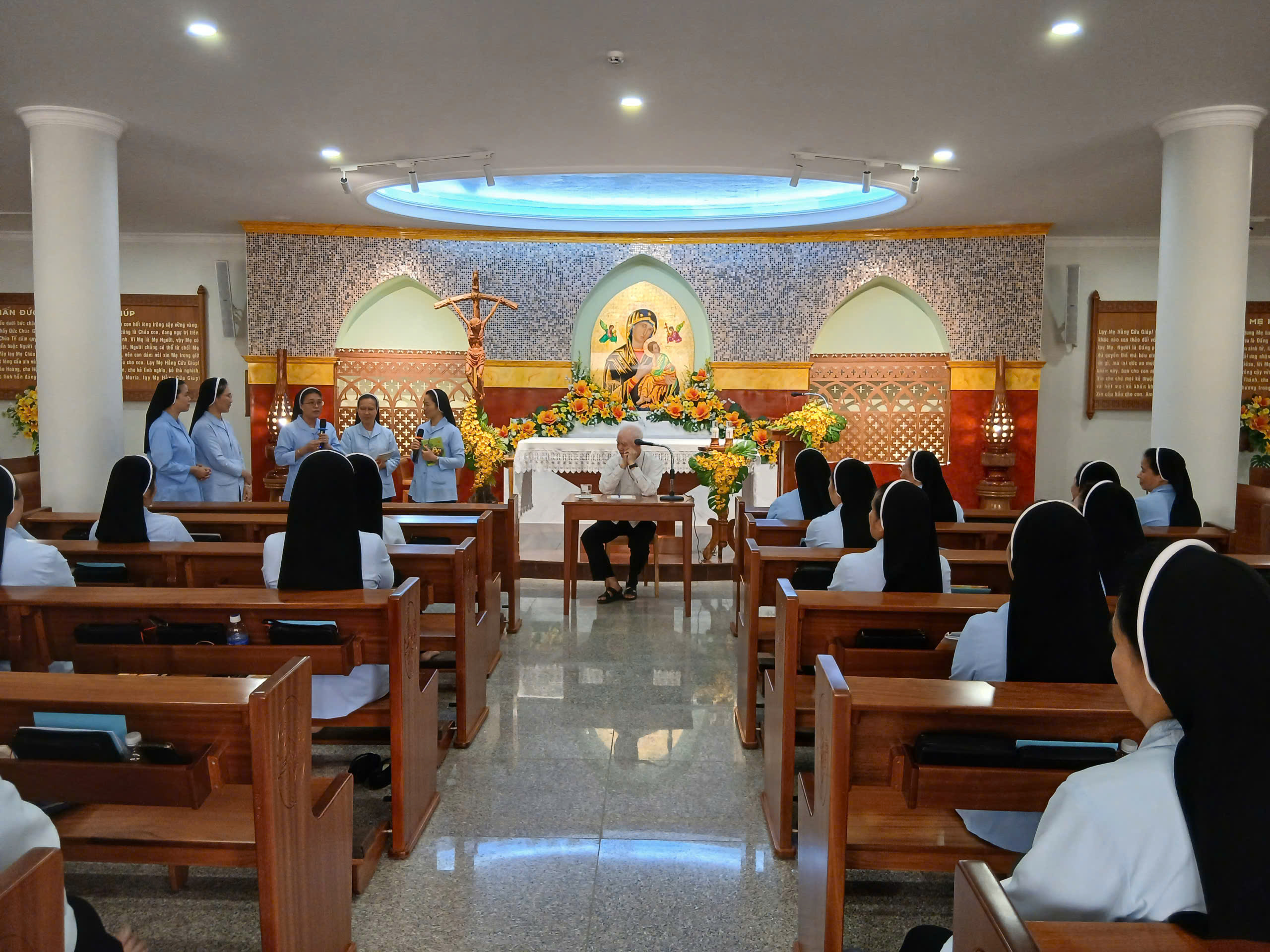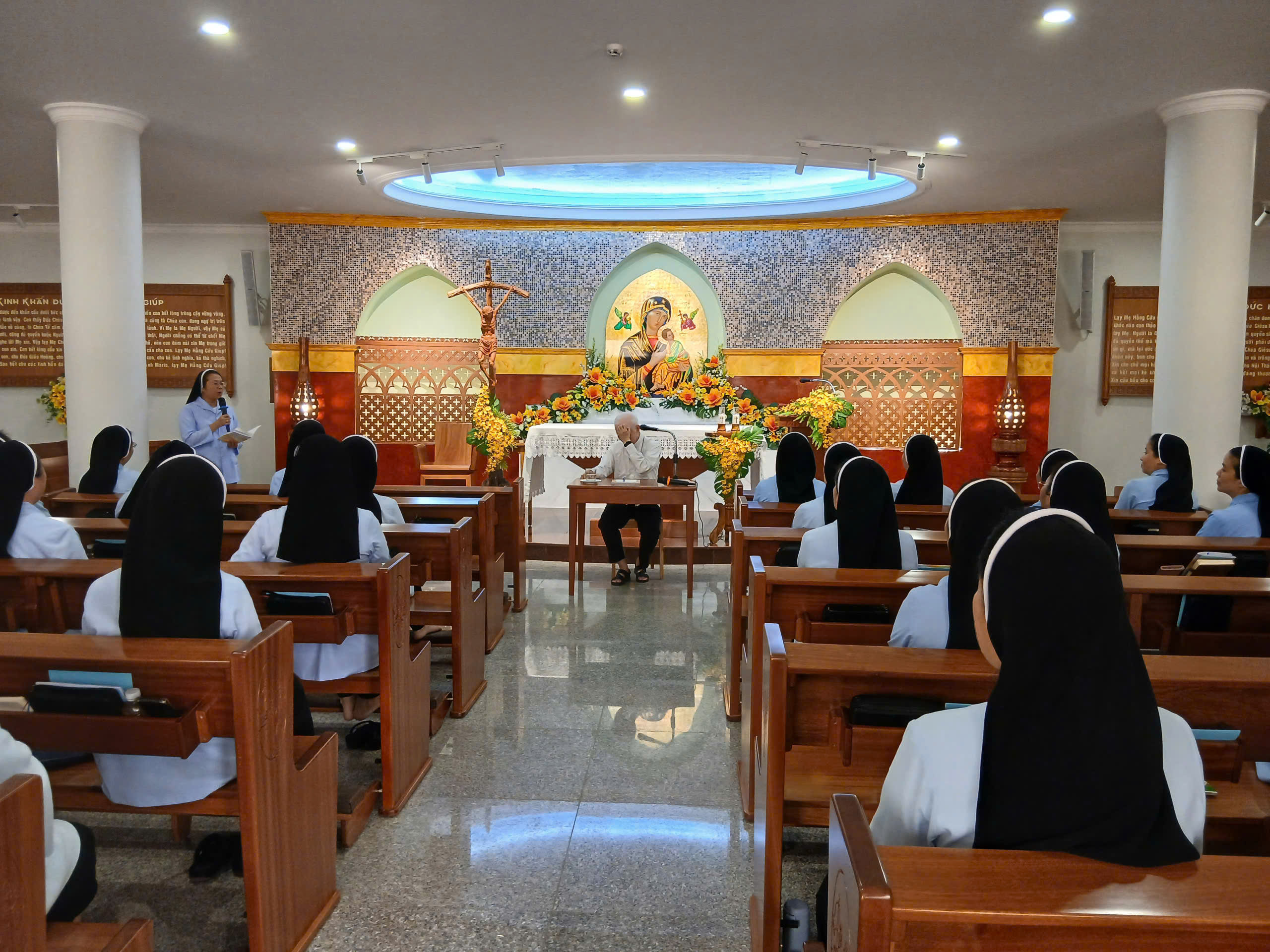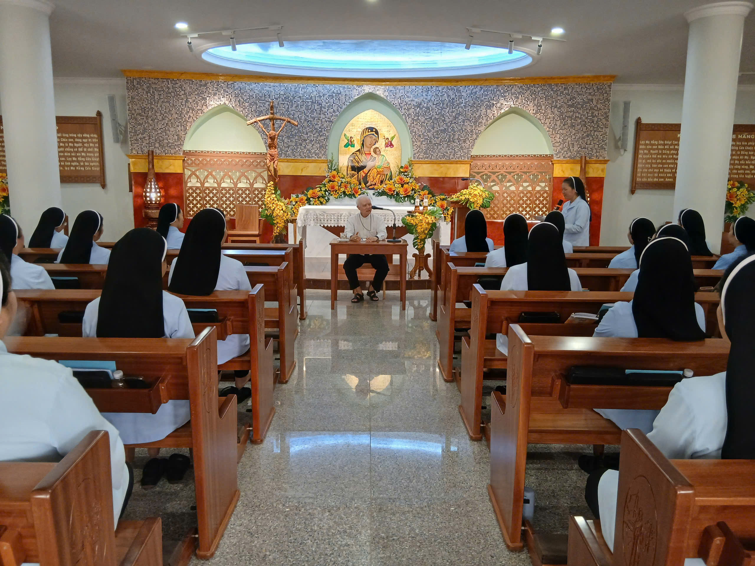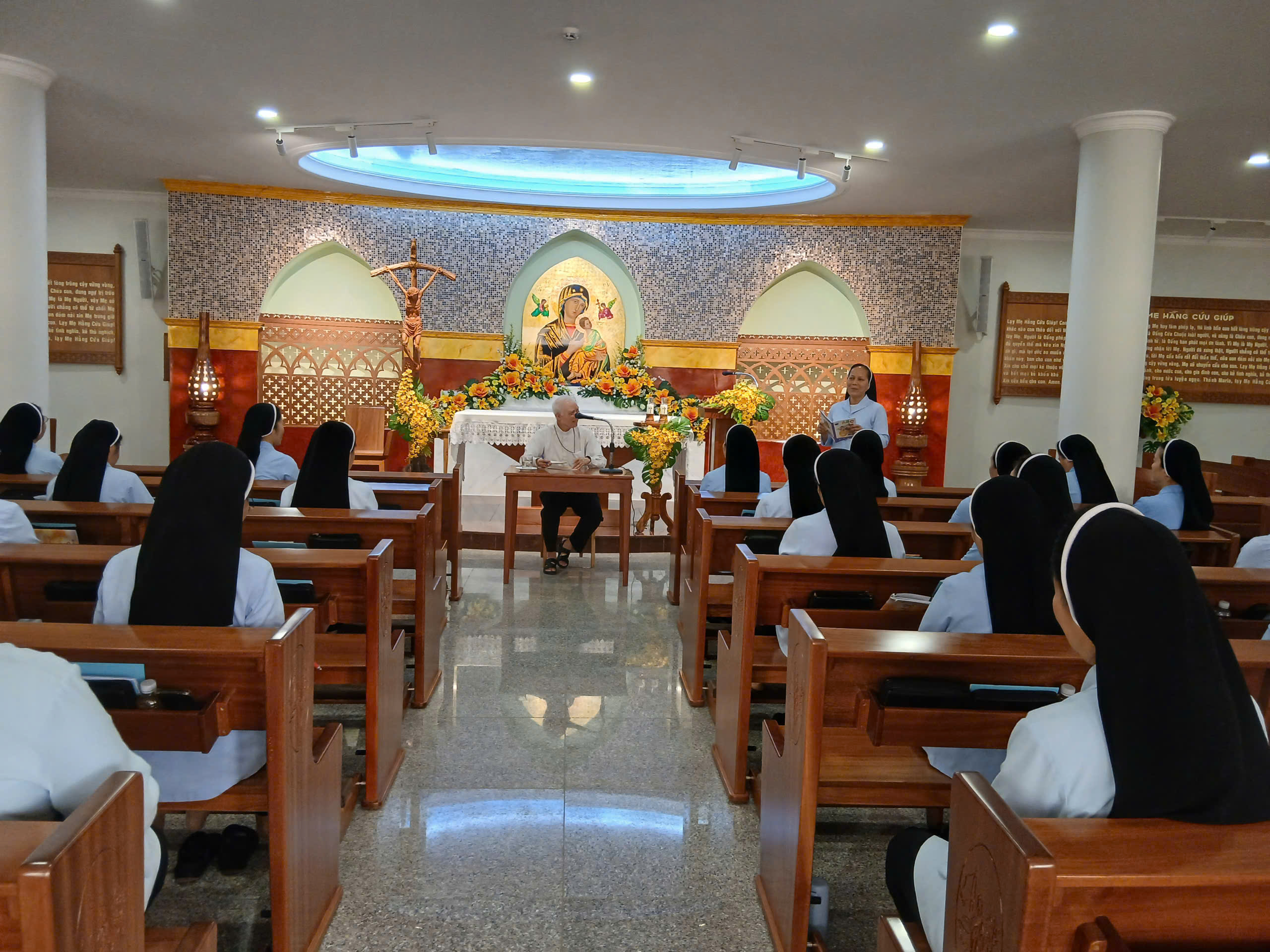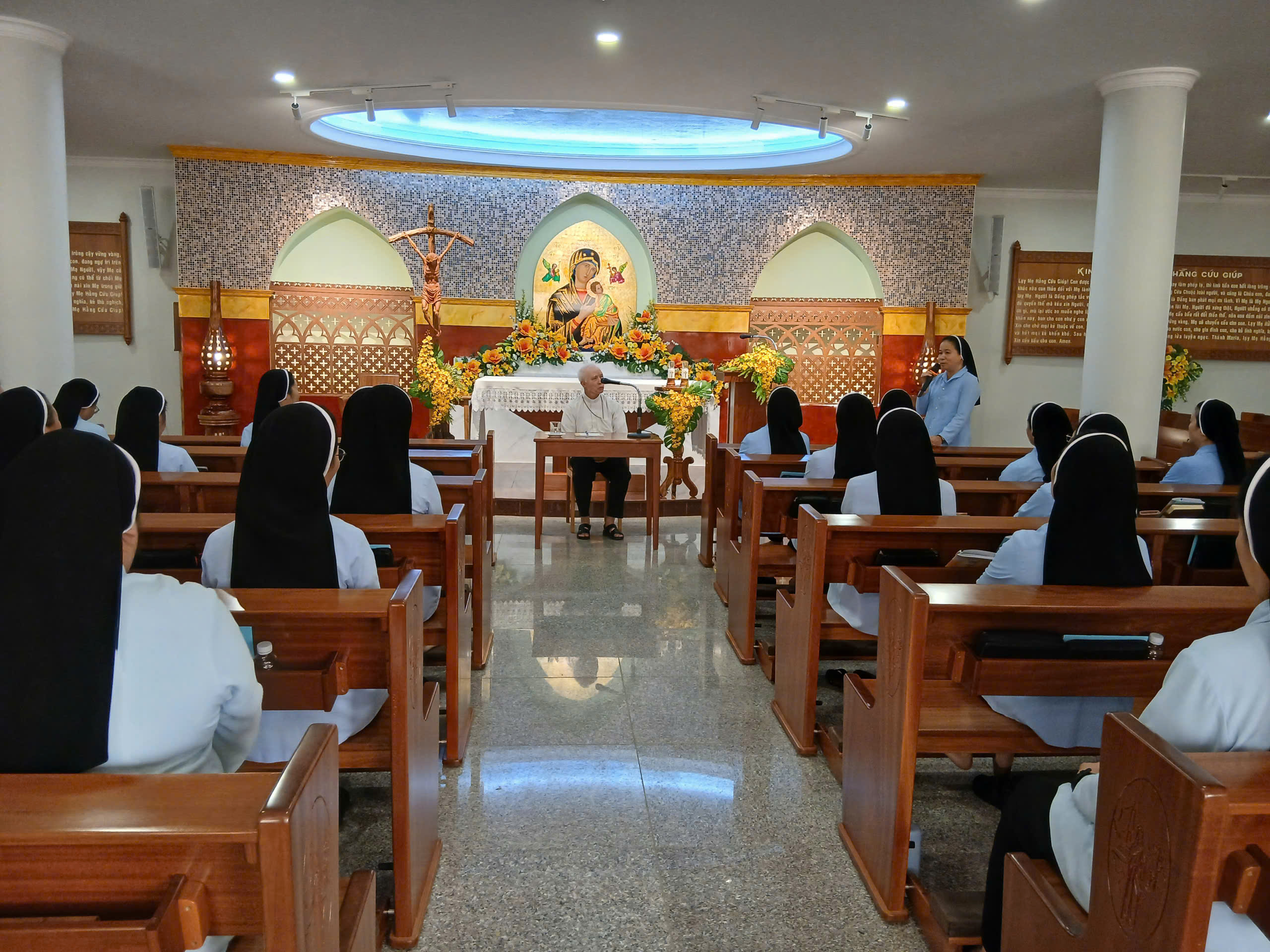 Như một sự tình cờ nhưng cũng đầy ý nghĩa, trong thánh lễ khai mạc, Đức Cha đã giúp chị em suy tư dựa trên đoạn Lời Chúa nói về hình ảnh cái đèn: “Có ai đem đèn sáng đặt trong thùng hay dưới gầm giường chăng? Chẳng phải là để đặt trên giá đèn sao?” (Mc 4, 21-25). Vâng, để được là những chiếc đèn, mỗi chúng ta phải được thắp sáng, được ấm nóng bởi Lời Chúa. Hơn thế nữa, chiếc đèn chỉ có giá trị khi nó được đặt trên giá để tỏa sáng, soi chiếu những người chung quanh. Cũng vậy, đời thánh hiến của quý chị phải tươi đẹp, phải rực rỡ, “tròn đầy” mới thật là một ngọn đèn đúng nghĩa; cụ thể, đèn của những người có trách nhiệm lại càng phải sáng, càng phải “đặt trên giá” để soi sáng và truyền cảm hứng cho những người mình có trách nhiệm.