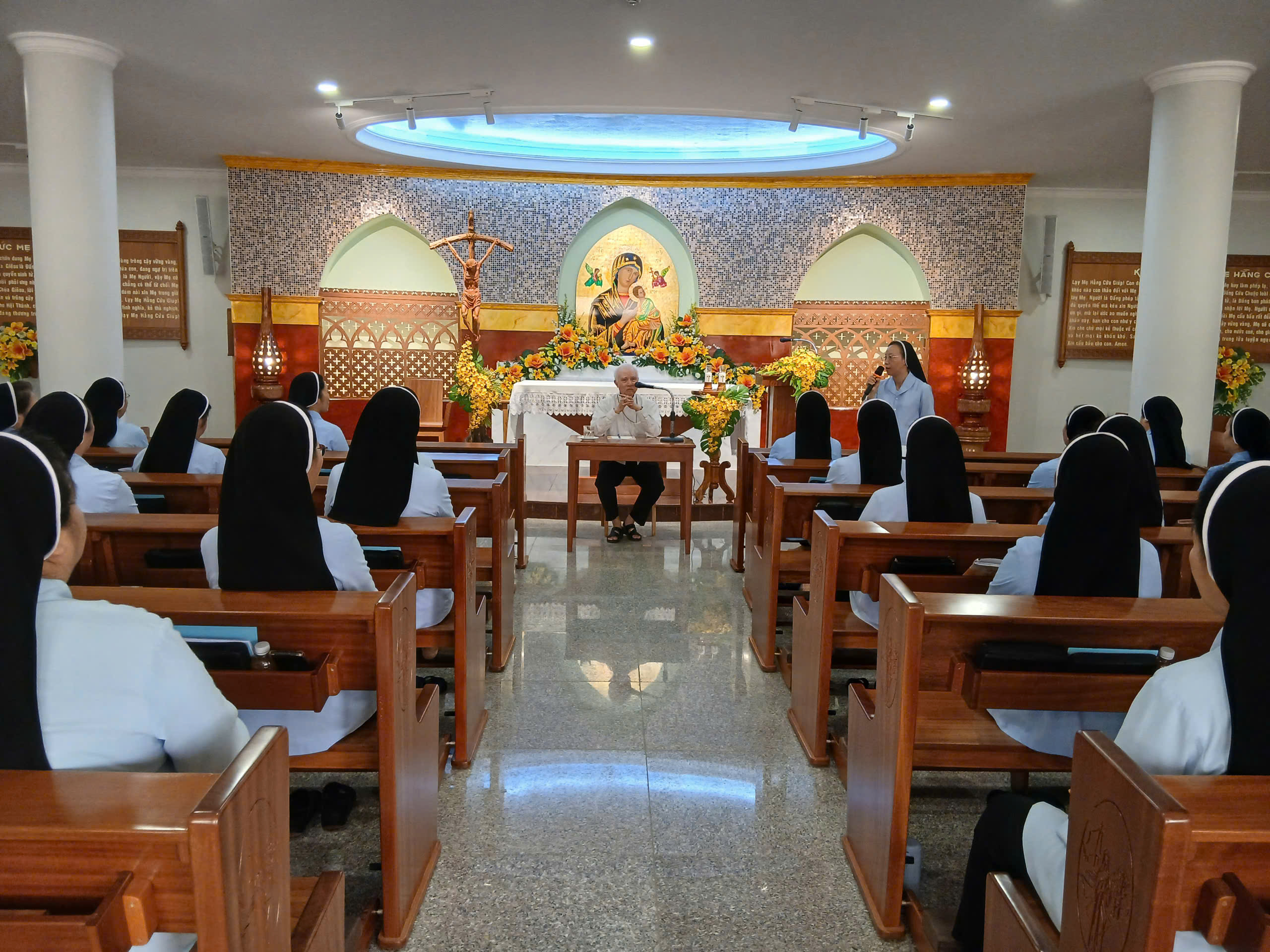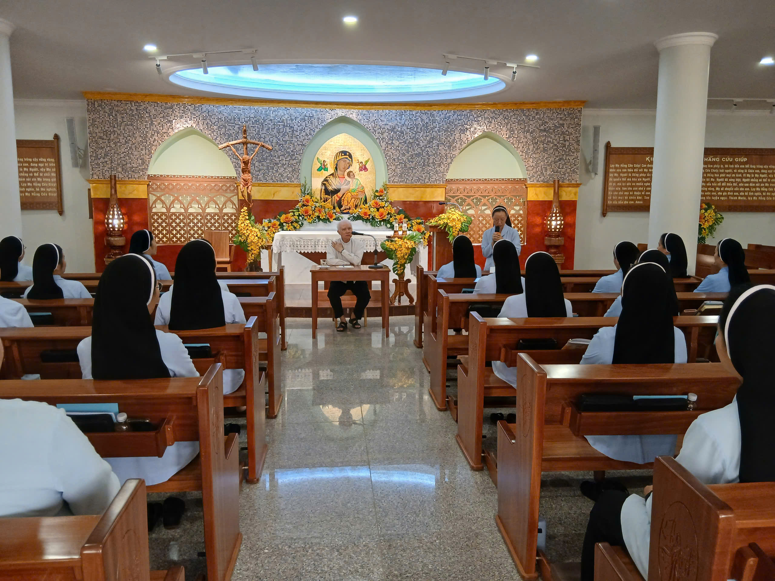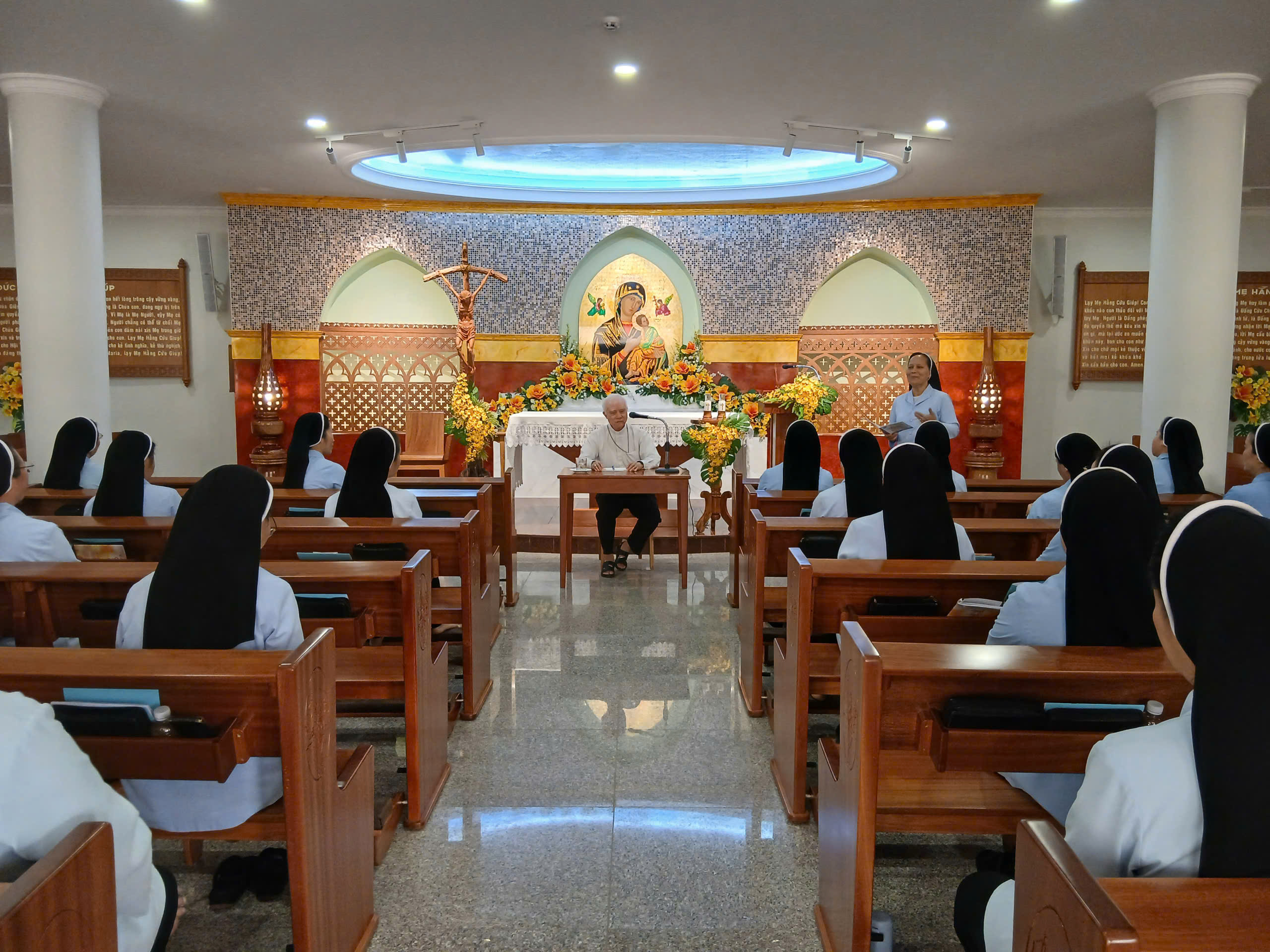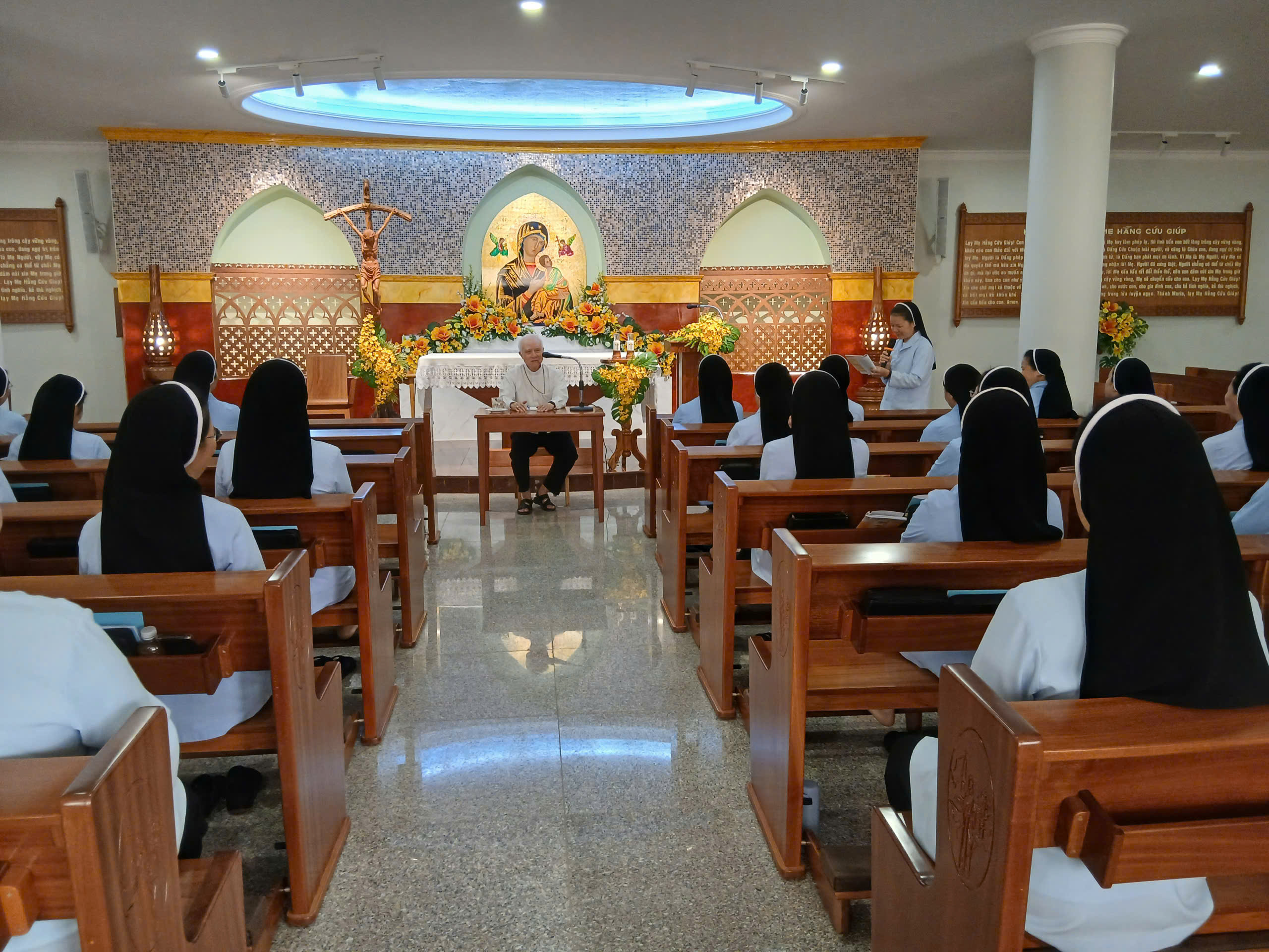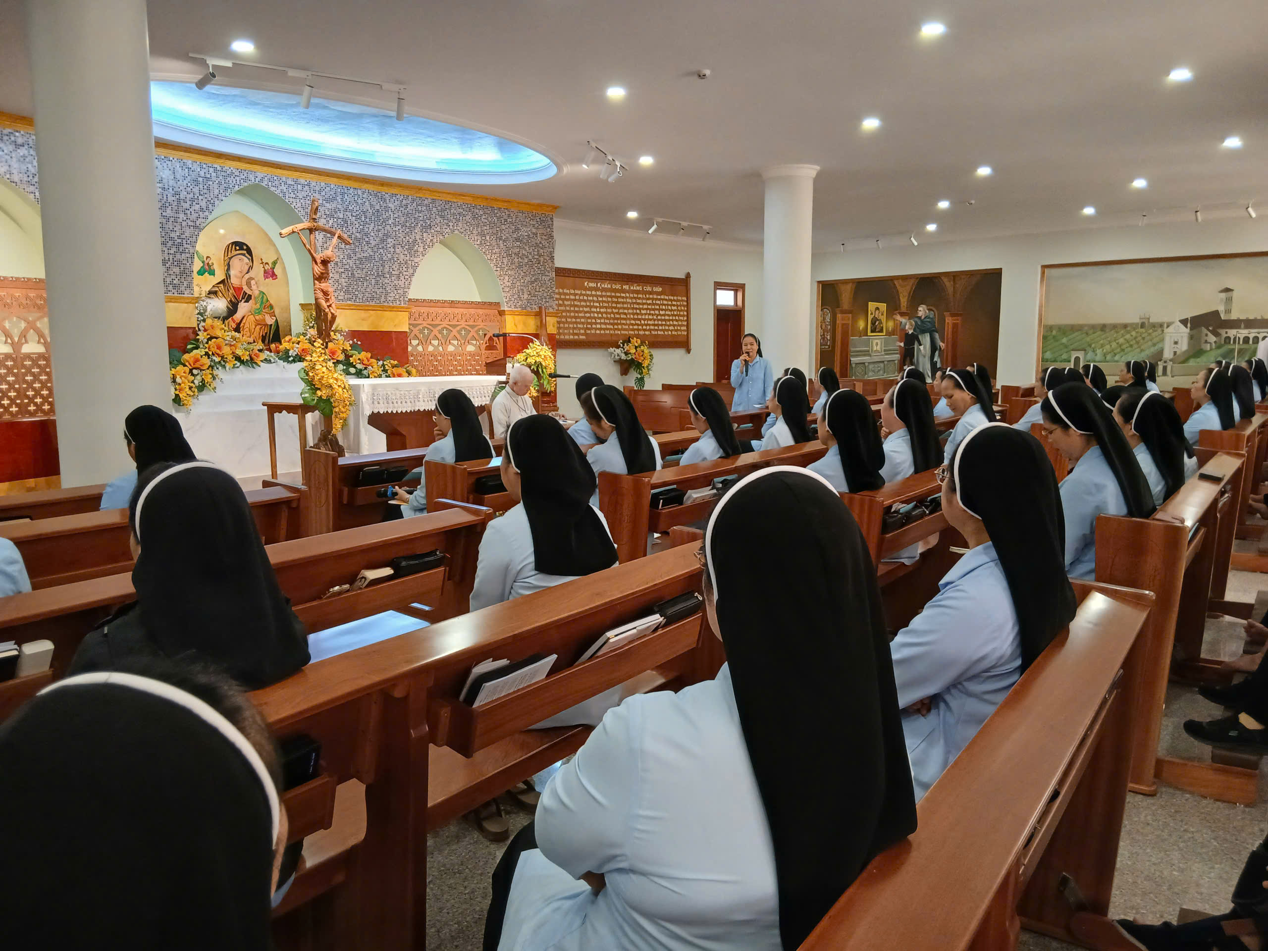 Như một sự tình cờ nhưng cũng đầy ý nghĩa, trong thánh lễ khai mạc, Đức Cha đã giúp chị em suy tư dựa trên đoạn Lời Chúa nói về hình ảnh cái đèn: “Có ai đem đèn sáng đặt trong thùng hay dưới gầm giường chăng? Chẳng phải là để đặt trên giá đèn sao?” (Mc 4, 21-25). Vâng, để được là những chiếc đèn, mỗi chúng ta phải được thắp sáng, được ấm nóng bởi Lời Chúa. Hơn thế nữa, chiếc đèn chỉ có giá trị khi nó được đặt trên giá để tỏa sáng, soi chiếu những người chung quanh. Cũng vậy, đời thánh hiến của quý chị phải tươi đẹp, phải rực rỡ, “tròn đầy” mới thật là một ngọn đèn đúng nghĩa; cụ thể, đèn của những người có trách nhiệm lại càng phải sáng, càng phải “đặt trên giá” để soi sáng và truyền cảm hứng cho những người mình có trách nhiệm.