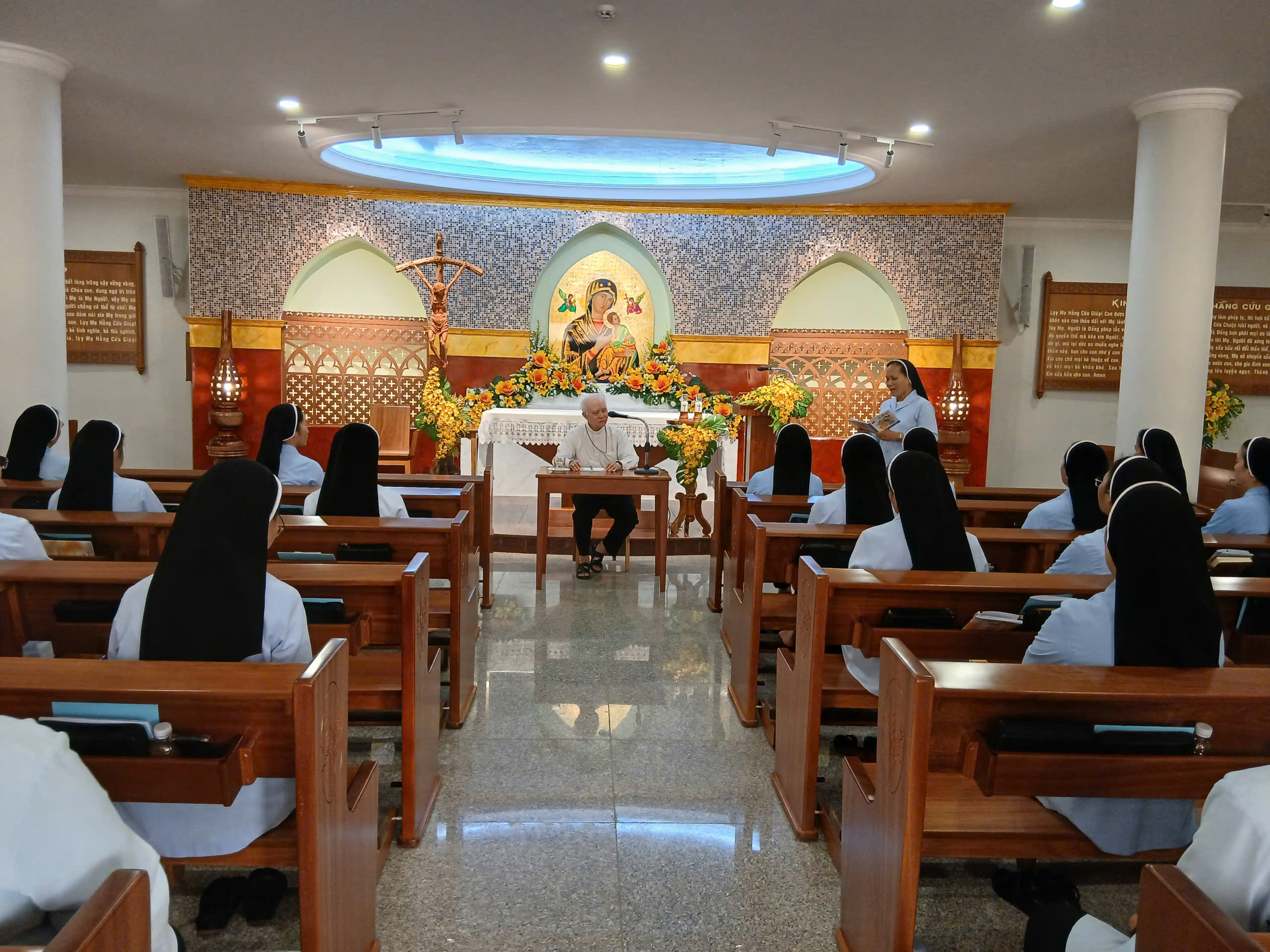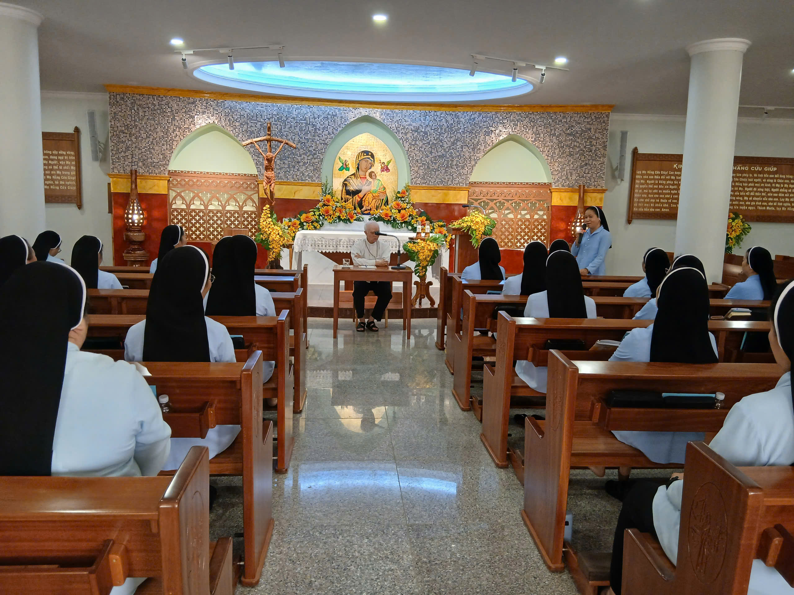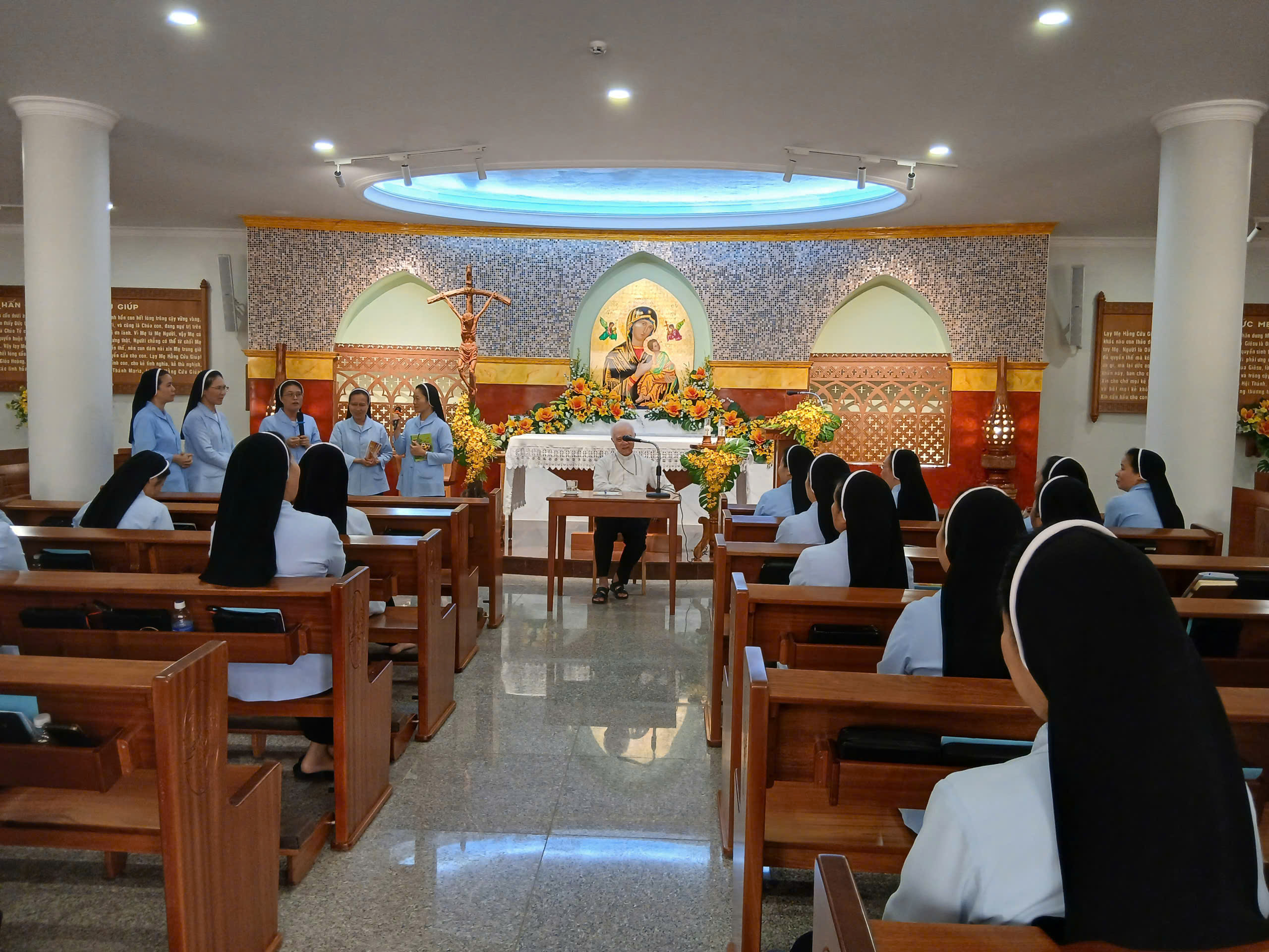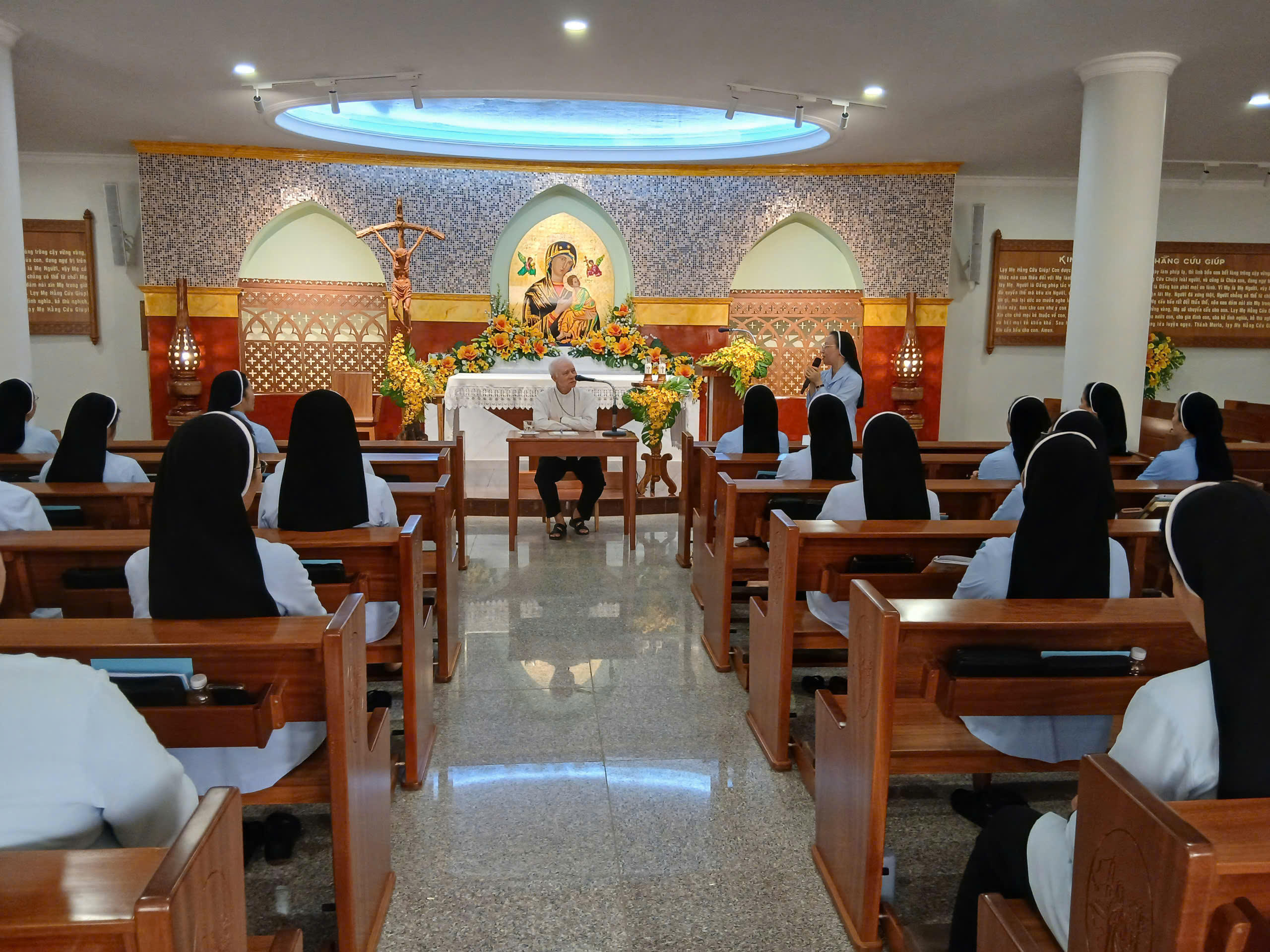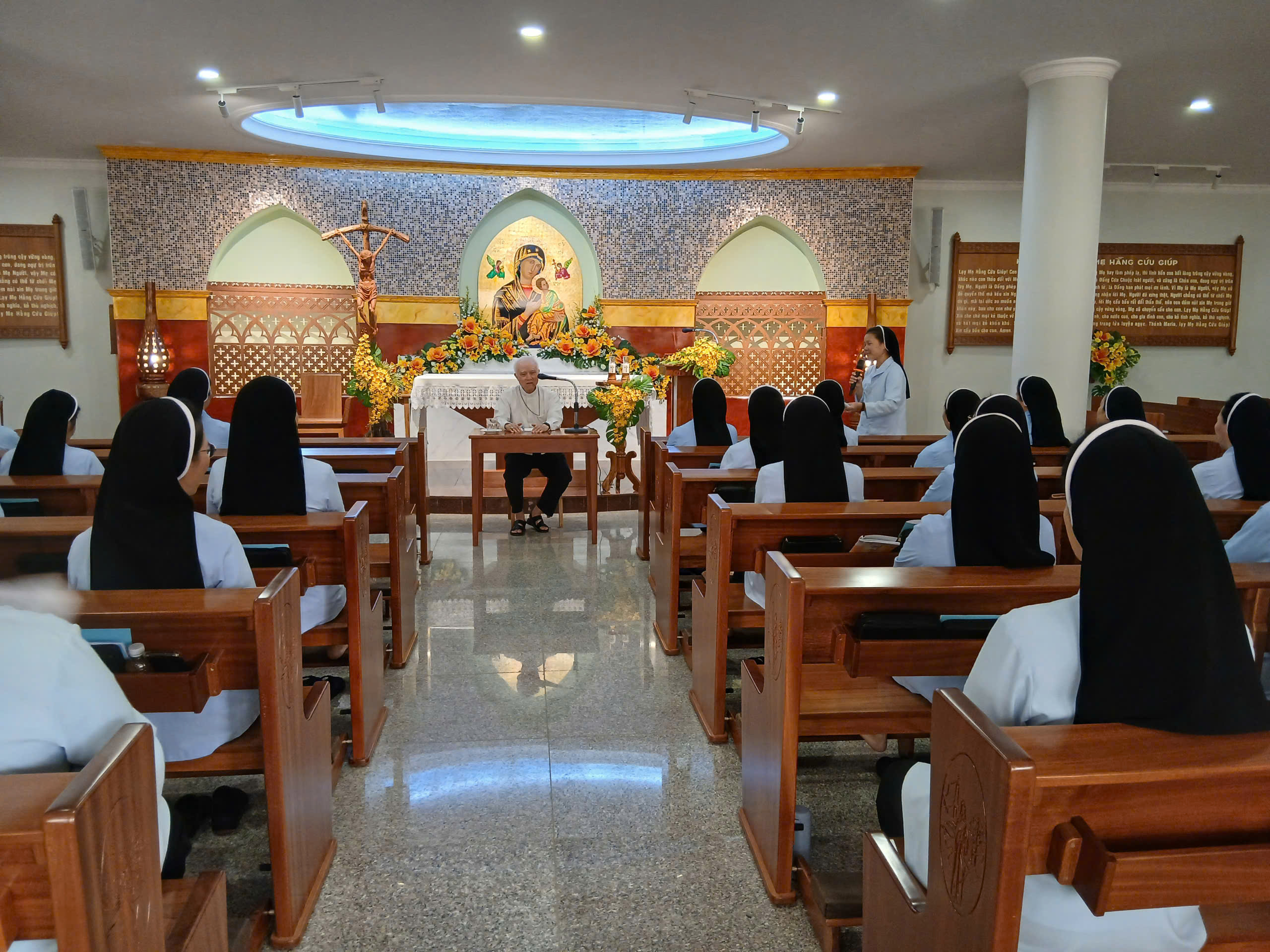 Như một sự tình cờ nhưng cũng đầy ý nghĩa, trong thánh lễ khai mạc, Đức Cha đã giúp chị em suy tư dựa trên đoạn Lời Chúa nói về hình ảnh cái đèn: “Có ai đem đèn sáng đặt trong thùng hay dưới gầm giường chăng? Chẳng phải là để đặt trên giá đèn sao?” (Mc 4, 21-25). Vâng, để được là những chiếc đèn, mỗi chúng ta phải được thắp sáng, được ấm nóng bởi Lời Chúa. Hơn thế nữa, chiếc đèn chỉ có giá trị khi nó được đặt trên giá để tỏa sáng, soi chiếu những người chung quanh. Cũng vậy, đời thánh hiến của quý chị phải tươi đẹp, phải rực rỡ, “tròn đầy” mới thật là một ngọn đèn đúng nghĩa; cụ thể, đèn của những người có trách nhiệm lại càng phải sáng, càng phải “đặt trên giá” để soi sáng và truyền cảm hứng cho những người mình có trách nhiệm.