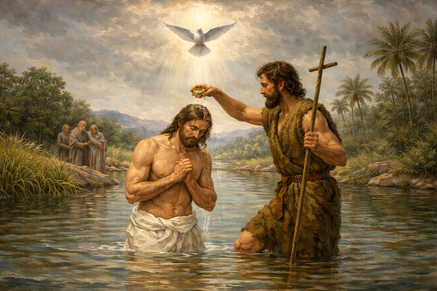 Chủ tế: Lạy Thiên Chúa là Cha hay Thương Xót, qua việcChúa Giêsu chịu Phép rửa, Cha đã mạc khải Người là Con yêu dấu của Cha. Xin cho chúng con được thông phần vào chính lòng hiếu thảo của Người đối với Cha.Người là Đấng hằng sống và hiển trị muôn đời.