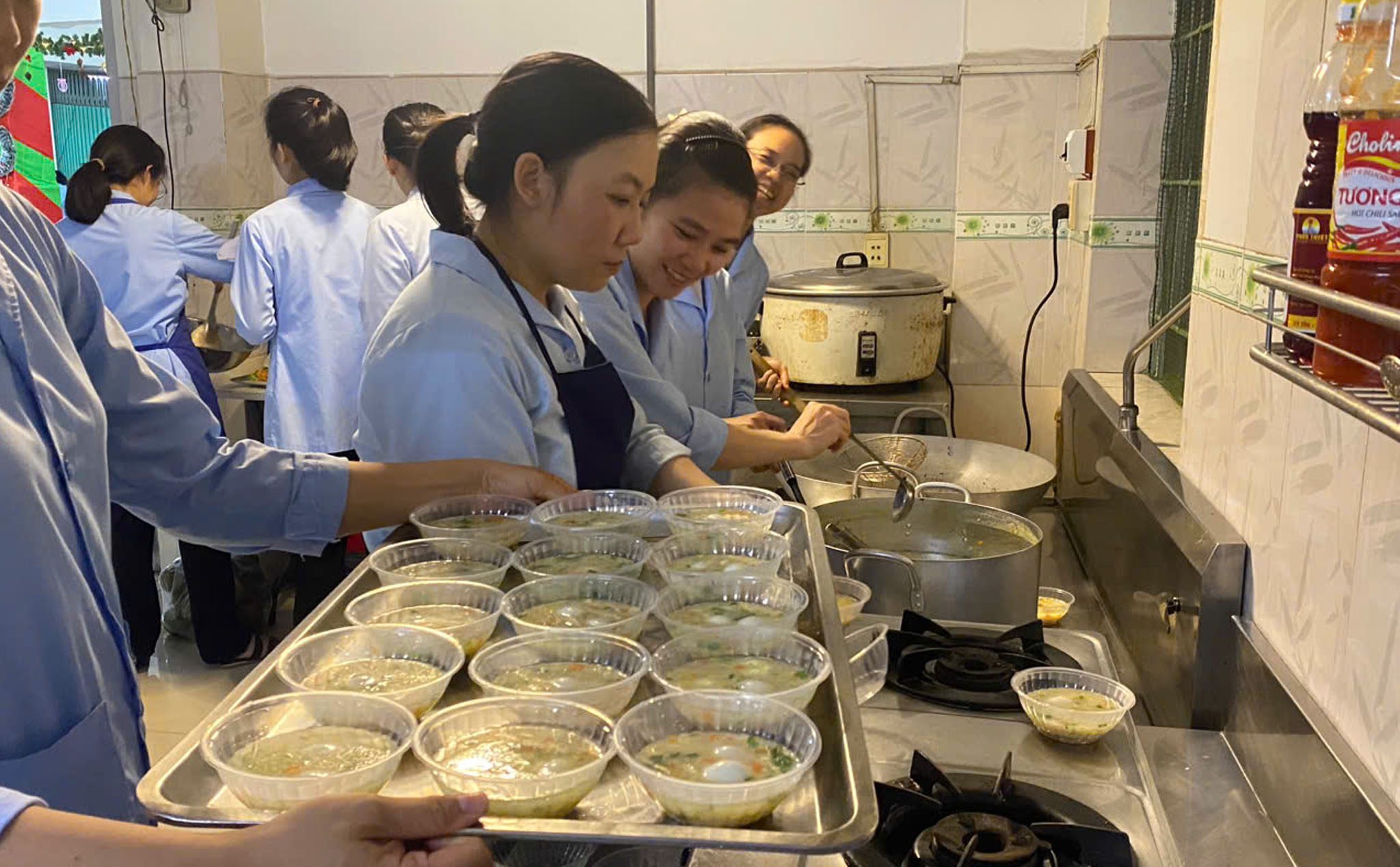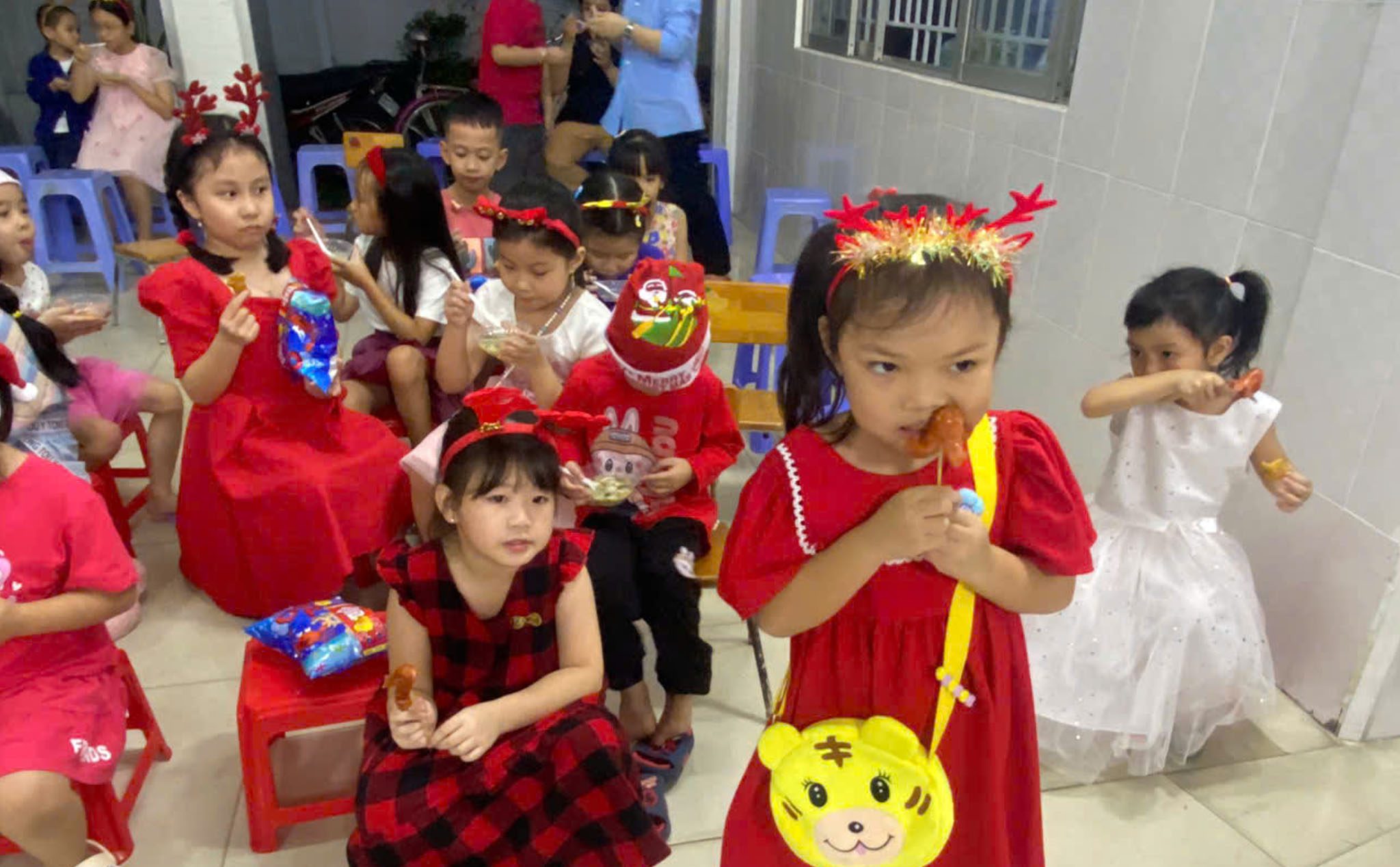 Năm nay, các chị em còn tổ chức một buổi liên hoan buffet Giáng Sinh ấm cúng cho các bé, với những món ăn thơm ngon được chính tay các chị em chuẩn bị.