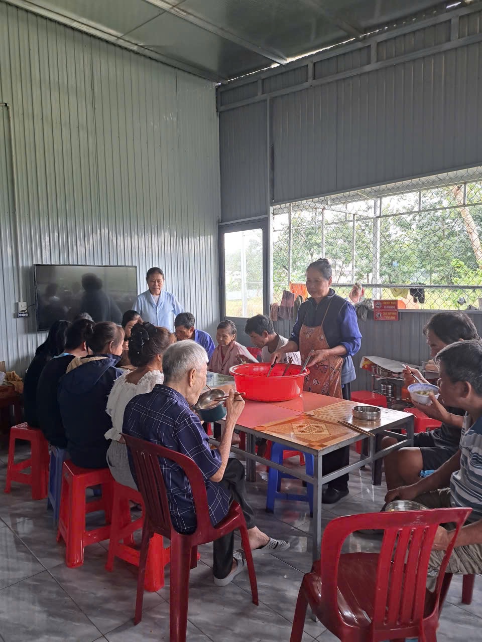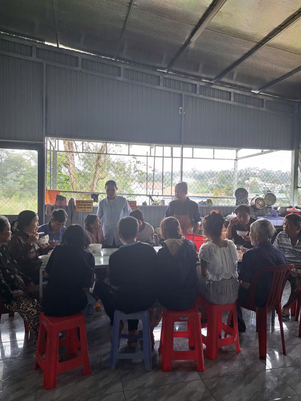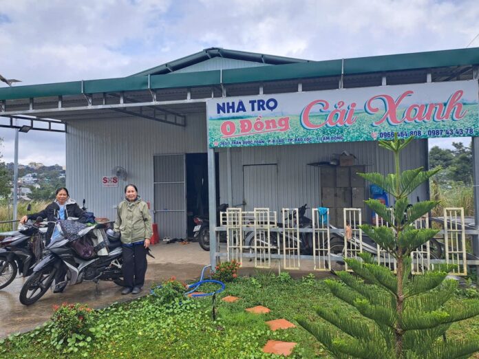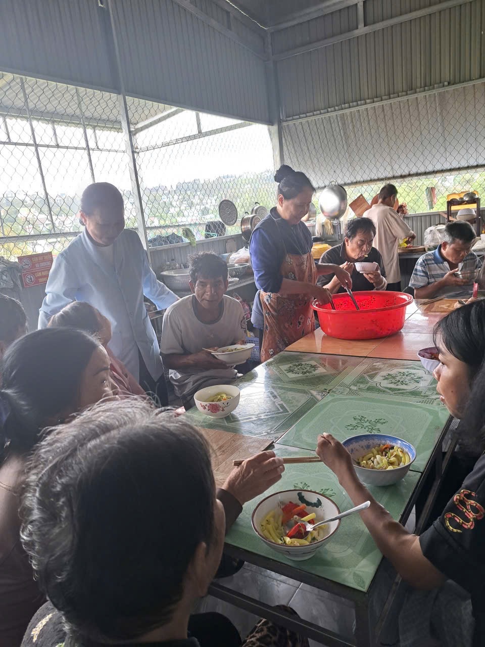 Thời tiết Bảo Lộc tháng Bảy ẩm ương, mưa nhiều hơn nắng; chẳng hề gì, 2 sơ U80 vẫn khoác áo mưa và thồ hàng, thẳng tiến về khu nhà trọ thân thương. NHÀ TRỌ CẢI XANH 0 ĐỒNG từ ngày có các sơ đồng hành, “cải” đã xanh hơn, tươi hơn. Những cụ ông, cụ bà, những chàng trai, cô gái, những bạn trẻ đôi mươi lâu nay chung cảnh hắt hiu buồn, nay những cặp mắt đã có hồn, đôi môi khô đã nhoẻn miệng, cánh tay phồng rộp những vết kim châm đã cùng các sơ lau chén, dọn bàn, chuẩn bị bữa ăn cho cả Gia Đình Nhà Cải!