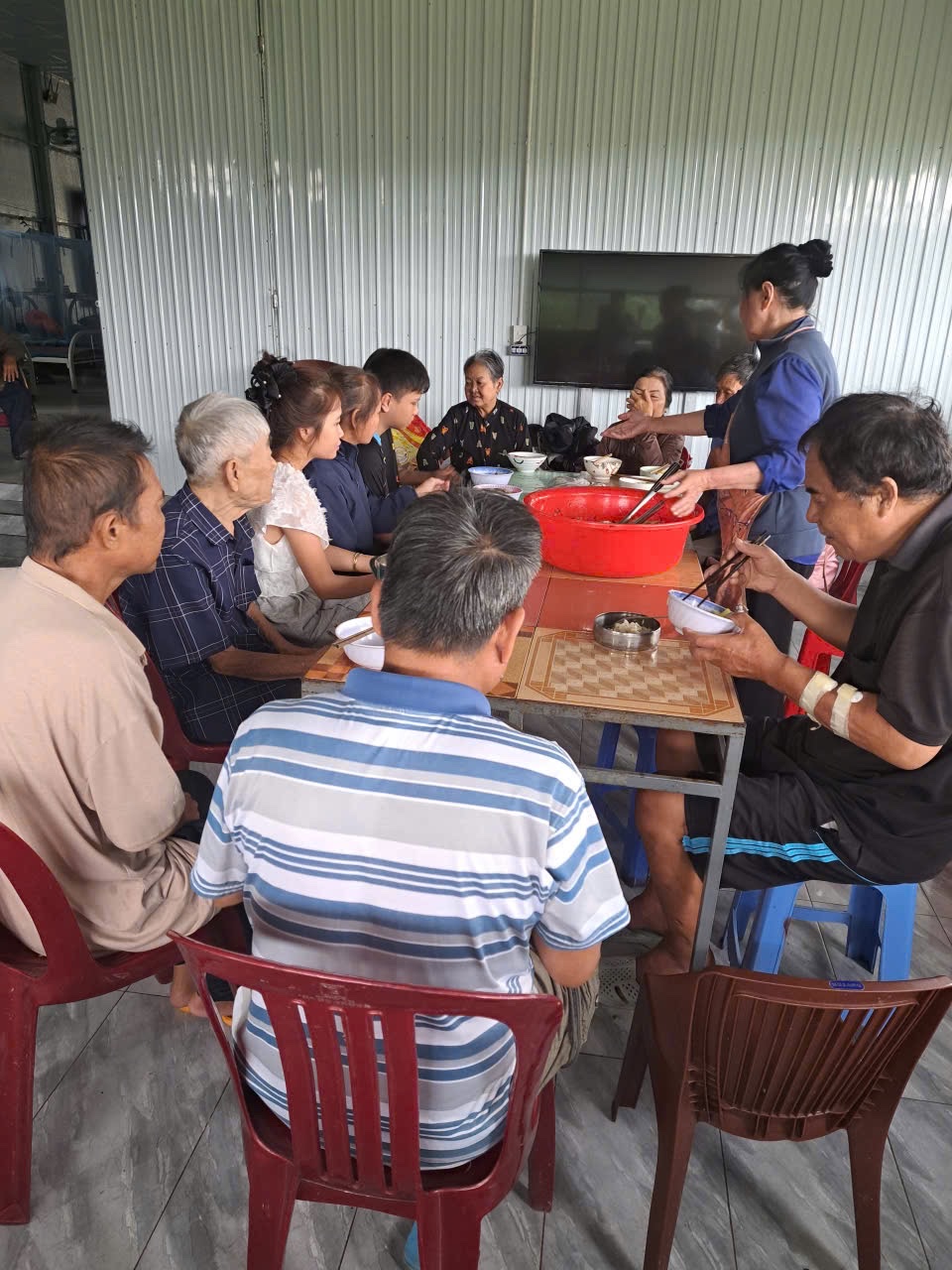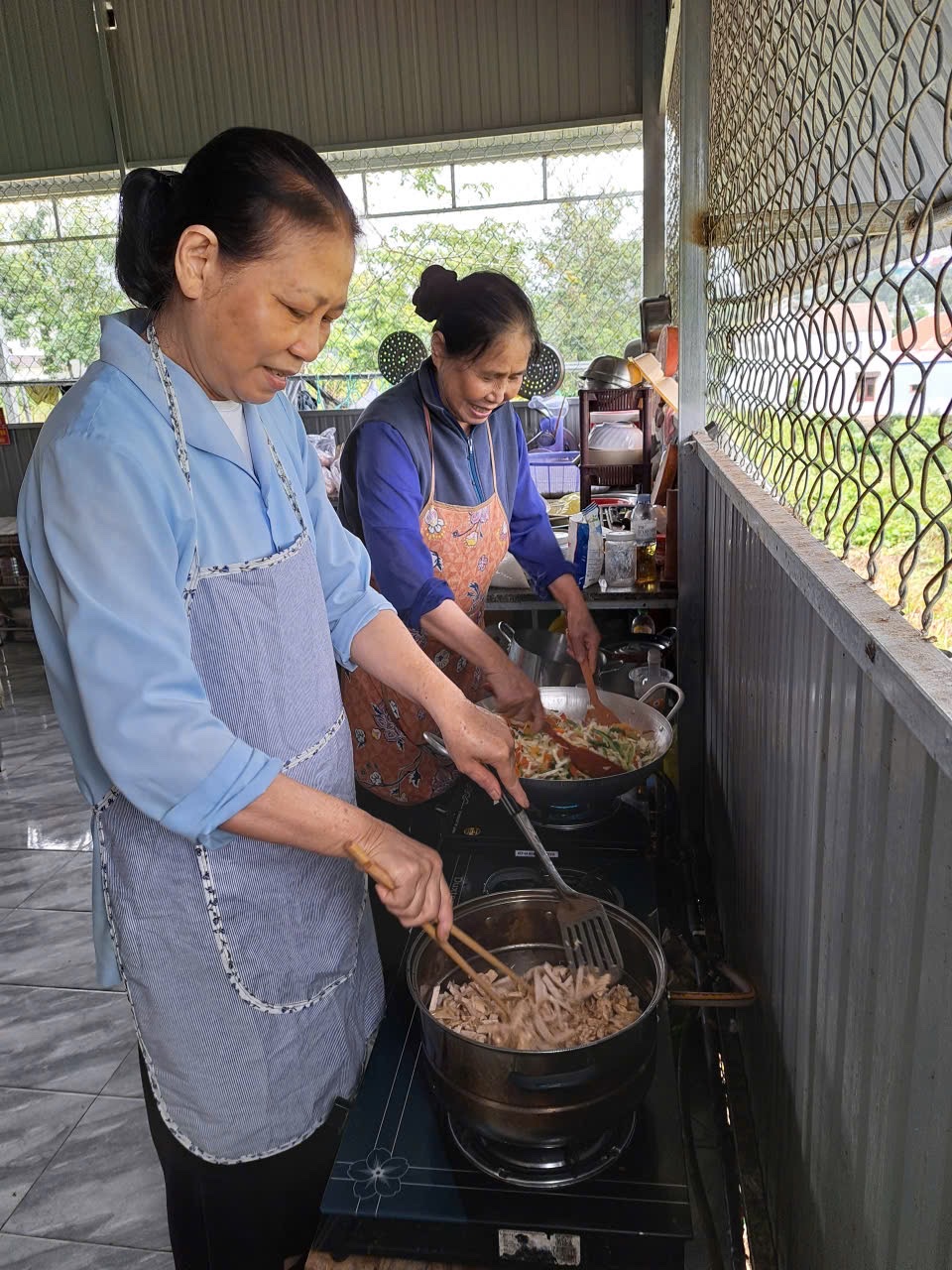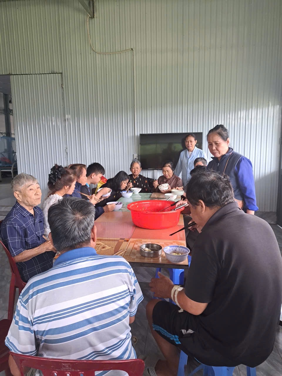 Thời tiết Bảo Lộc tháng Bảy ẩm ương, mưa nhiều hơn nắng; chẳng hề gì, 2 sơ U80 vẫn khoác áo mưa và thồ hàng, thẳng tiến về khu nhà trọ thân thương. NHÀ TRỌ CẢI XANH 0 ĐỒNG từ ngày có các sơ đồng hành, “cải” đã xanh hơn, tươi hơn. Những cụ ông, cụ bà, những chàng trai, cô gái, những bạn trẻ đôi mươi lâu nay chung cảnh hắt hiu buồn, nay những cặp mắt đã có hồn, đôi môi khô đã nhoẻn miệng, cánh tay phồng rộp những vết kim châm đã cùng các sơ lau chén, dọn bàn, chuẩn bị bữa ăn cho cả Gia Đình Nhà Cải!