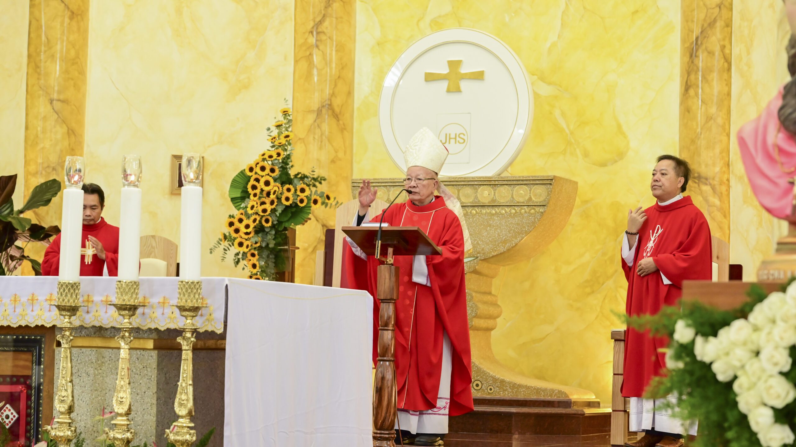 Đúng 10g00: Đức Cha Antôn và quý Cha đồng tế đã long trọng dâng thánh lễ Suy Tôn Thánh Giá, chia sẻ niềm vui thánh thiện với Hội Dòng và anh chị em Hiệp Hội. Qua các bản văn Lời Chúa, Đức Cha đã hướng dẫn cộng đoàn: chúng ta không suy tôn sự đau khổ nhưng suy tôn Tình Yêu Của Thiên Chúa trong cuộc đời mỗi chúng ta. Con rắn đồng treo lên chỉ cứu một số người trong dân tộc Israel, nhưng Thánh Giá của Chúa Giêsu Kitô là đỉnh cao của Tình Yêu để cứu chuộc mọi người trên bước đường theo Chúa qua việc chu toàn thánh ý của Thiên Chúa.