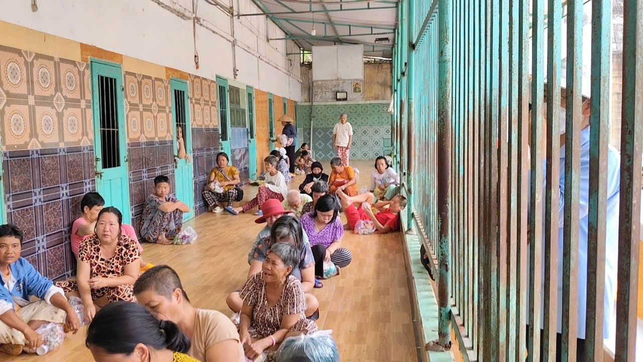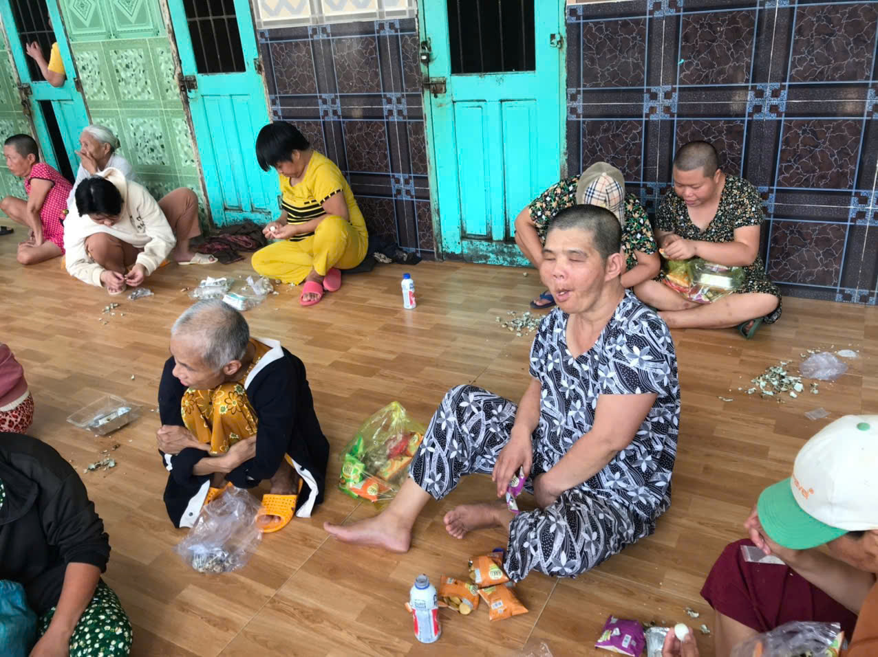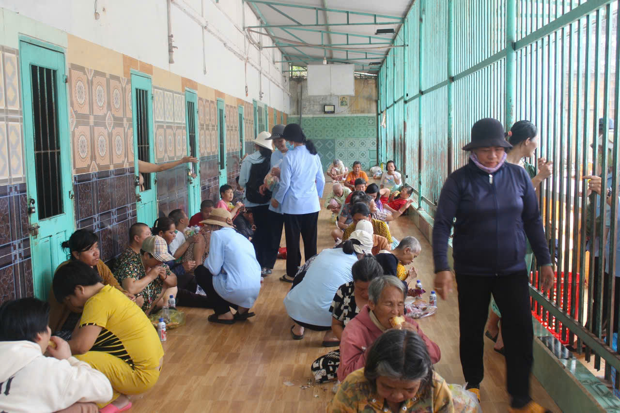 Nhìn các chị vui sướng đón lấy những phần quà và thưởng thức món khoái khẩu với vẻ nhiệt tình, thích thú, lòng chúng con bỗng nghẹn đắng. Chua xót biết bao khi thấy những mái đầu đã điểm bạc, thân hình đã hằn vết thời gian, nhưng tâm hồn lại ngây ngô như trẻ thơ. Họ hạnh phúc một cách tội nghiệp, cầm trên tay món quà nhỏ mà ăn ngấu nghiến ngon lành, chẳng còn ưu tư, chẳng còn hay biết đến những thăng trầm của cuộc đời đang vần xoay ngoài kia.