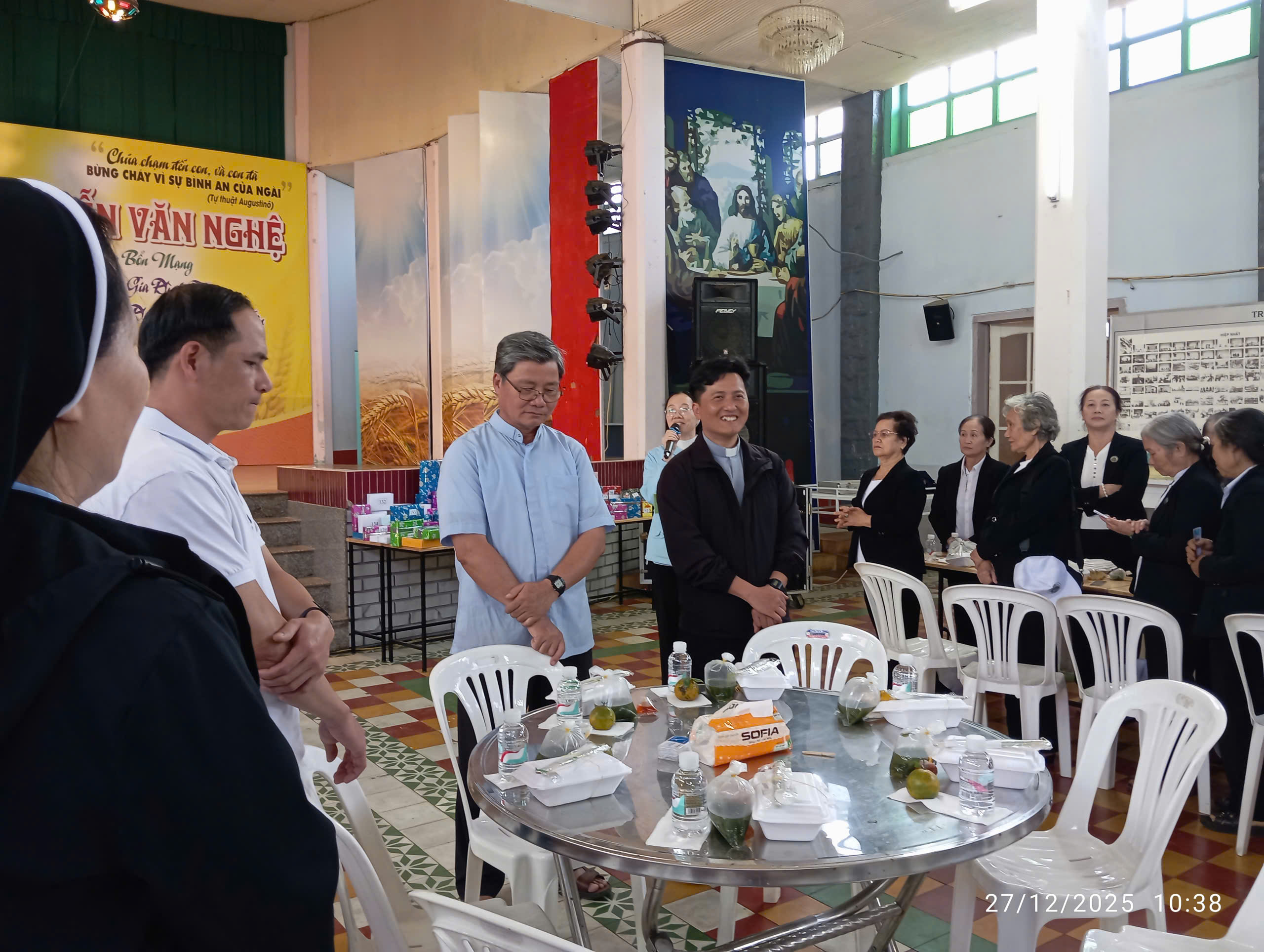 Sau giờ chia sẻ, lúc 9g15 các hội viên có giờ giải lao. Đến 9g45, các hội viên quỳ trước Thánh Thể Chúa, lắng đọng tâm hồn với biết bao tâm tình dâng lên Chúa. Đến10g15, sr đặc trách hiệp hội, quý Soeurs trợ úy, các hội viên quy tụ lại tại hội trường. Ngoài ra còn có cha giảng huấn, cha quản hạt giáo hạt Bảo Lộc, thầy xứ Bảo Lộc có bữa ăn thanh đạm. Và một điều không thể thiếu trong mùa Giáng Sinh, đó là chương trình bốc số rút quà …
