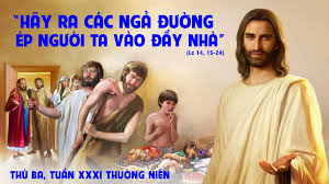Khi ấy, một người đồng bàn thưa cùng Chúa Giêsu rằng: “Phúc cho kẻ sẽ được ăn tiệc trong nước Thiên Chúa”. Người phán cùng kẻ ấy rằng: “Có một người kia dọn tiệc linh đình, và đã mời nhiều thực khách. Tới giờ dự tiệc, ông sai đầy tớ đi báo cho những kẻ được mời để họ đến, vì mọi sự đã dọn sẵn sàng rồi. Nhưng mọi người đồng thanh xin kiếu. Người thứ nhất nói với ông rằng: “Tôi mới tậu một thửa ruộng, tôi cần phải đi xem đất, nên xin ông cho tôi kiếu”. Người thứ hai nói: “Tôi mới mua năm đôi bò, và tôi phải đi thử chúng, nên xin ông cho tôi kiếu”. Người khác lại rằng: “Tôi mới cưới vợ, bởi đó tôi không thể đến được”. “Người đầy tớ trở về thuật lại những điều đó cho chủ mình. Bấy giờ chủ nhà liền nổi giận, bảo người đầy tớ rằng: “Anh hãy cấp tốc đi ra các công trường và các ngõ hẻm thành phố mà dẫn về đây những người hành khất, tàn tật, đui mù và què quặt”. Người đầy tớ trở về trình rằng: “Thưa ông, lệnh ông ban đã được thi hành, thế mà hãy còn dư chỗ”. Ông chủ lại bảo người đầy tớ rằng: “Anh hãy ra ngoài đường ngoài ngõ và cố ép người ta vào cho đầy nhà tôi. Vì tôi bảo cho các người biết: không một ai trong những kẻ đã được mời, sẽ được nếm bữa tiệc của tôi”.