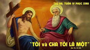 - Chúng ta thấy Đức Giêsu không trả lời thẳng câu hỏi họ đặt ra, nhưng một lần nữa, Chúa cho họ biết Đấng Kitô không phải như quan niệm trần tục của họ, Đấng Kitô không đến để làm thỏa mãn những tham vọng chính trị của họ là giải phóng dân tộc của họ và đem lại thịnh vượng vật chất cho họ. Cho nên, Chúa vượt lên trên quan niệm thiên sai trần thế, và tuyên bố cho họ biết Ngài đồng bản tính với Chúa Cha :”Tôi và Cha tôi là một”.