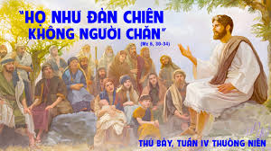 Họ giống như đàn chiên đang bơ vơ không có mục tử chăn dắt. Đây là hình ảnh đáng thương của dân Isrsel thời bấy giờ. Không phải dân không có các vị lo việc phụng tự và dạy dỗ, bởi vì trong 12 chi tộc thì đã có cả một chi tộc Lêvi làm tư tế, trung bình 1/12. Họ còn có những tầng lớp lãnh đạo, các luật sĩ, biệt phái… Thế nhưng, những đầu mục, các tư tế và các luật sĩ chỉ lo tìm kiếm tư lợi hơn là dạy cho dân nghe Lời Chúa. Họ tìm cách chú giải những điều luật theo ý mình và có lợi cho mình hơn là Lời Chúa. Chính vì thế mà sự xuất hiện của Tin Mừng mà Chúa Giêsu và các môn đệ rao giảng làm họ phấn khởi đi theo. Chính điều này đã đặt ra một sự cấp bách truyền giáo, mà Chúa Giêsu và các môn đệ phải xả thân đến nỗi không còn thời giờ để nghỉ ngơi vì sự khao khát của dân chúng.