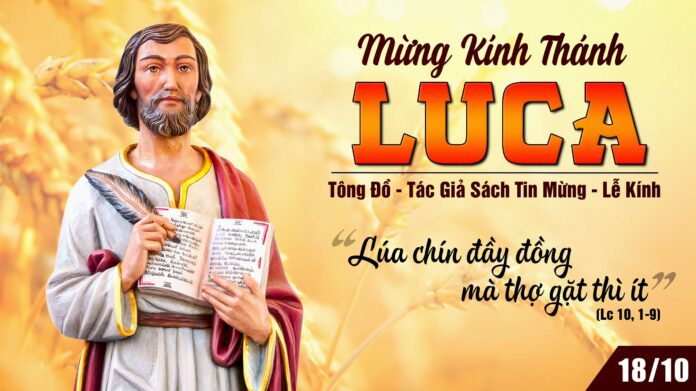 Hôm nay chúng ta cùng với Giáo Hội mừng kính Thánh Luca, Tác Giả Sách Tin Mừng. Thánh nhân là ai? Bài đọc 1 hôm nay trình bày cho chúng ta biết thánh sử là một trong những cộng sự của Thánh Phaolô: “Anh thân mến, anh Đêma đã bỏ tôi, bởi yêu mến thế gian này; anh ta đã đi Thêxalônica. Anh Cơrétxen đã đi sang miền Galát, anh Titô đi sang miền Đanmatia. Chỉ còn một mình anh Luca ở với tôi” (2 Tm 4:10-11). Dù người khác bỏ Thánh Phaolô, Luca không bỏ rơi. Điều này chứng tỏ thánh nhân là một người “trung thành” với ơn kêu gọi của mình và sẵn sàng gắn bó và cộng tác với người khác trong công việc loan báo Tin Mừng. Đây chính là điều đầu tiên chúng ta có thể học hỏi ở thánh nhân. Nhiều lần trong cuộc sống, chúng ta không cộng tác với những người chúng ta thấy không hợp, không thích. Chúng ta đánh đổi niềm vui mang Chúa đến cho người khác với một vài cảm xúc khó chịu khi sống và làm việc chung với người khác. Đừng để bất kỳ điều gì cướp mất niềm vui rao giảng Tin Mừng của chúng ta.
