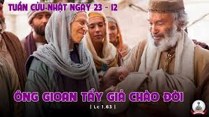 -Niềm vui của vợ chồng bà Êlisabet và sự chúc mừng của láng giềng: Mọi người đều vui vì em bé chào đời. Nhưng có lẽ không ai tưởng tượng em bé này lớn lên sẽ sống khác người, đến nỗi bị coi là ‘quỉ ám’, rồi chống lại nhà vua, bị bỏ tù, cuối cùng bị chém đầu!