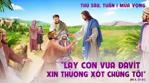 - Số phận người mù thật bi đát, họ nghe mà không biết sự vật chung quang thế nào. Họ phải sống trong cô đơn. Cảm nghiệm được nỗi bất hạnh của mình, hai người mù vừa lẽo đẽo theo Đức Giêsu vừa van xin Ngài :”Lạy con vua Đavít, xin thương xót chúng tôi”. Ý thức được nỗi khốn cùng của mình là bước khởi đầu nền tảng để đáng được Thiên Chúa xót thương. Càng thấy mình bất lực, chúng ta càng phải cậy dựa vào Thiên Chúa. Điều quan trọng là chúng ta có biết bám chặt vào Chúa và xin Chúa chữa lành tâm hồn chúng ta không ?