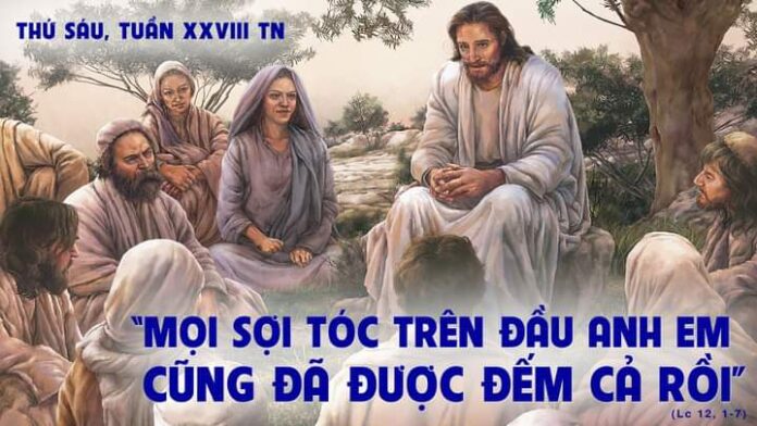 Khi ấy, có nhiều đám đông dân chúng đứng chung quanh, đến nỗi chen đạp lẫn nhau, nên Chúa Giêsu bắt đầu dạy các môn đệ trước tiên rằng: “Các con hãy ý tứ giữ mình khỏi men biệt phái, nghĩa là sự giả hình. Không có gì che đậy mà không bị tiết lộ ra, và không có gì giấu kín mà chẳng biết được. Vì vậy, những điều các con nói trong nơi tối tăm, sẽ được nói ra nơi sáng sủa, và điều các con nói rỉ tai trong buồng kín, sẽ được rao giảng trên mái nhà. “Thầy bảo các con là những bạn hữu của Thầy rằng: Các con đừng sợ chi những kẻ giết được thân xác, rồi sau đó không thể làm gì hơn được nữa. Thầy sẽ chỉ cho các con biết phải sợ ai: Hãy sợ Đấng, sau khi đã giết chết, còn có quyền ném vào địa ngục. Phải, Thầy bảo các con hãy sợ Đấng ấy. “Chớ thì năm con chim sẻ không bán được hai đồng tiền sao? Thế mà không một con nào bị bỏ quên trước mặt Thiên Chúa. Hơn nữa, mọi sợi tóc trên đầu các con cũng đã được đếm cả rồi. Vậy các con đừng sợ: các con còn trọng hơn nhiều con chim sẻ”.