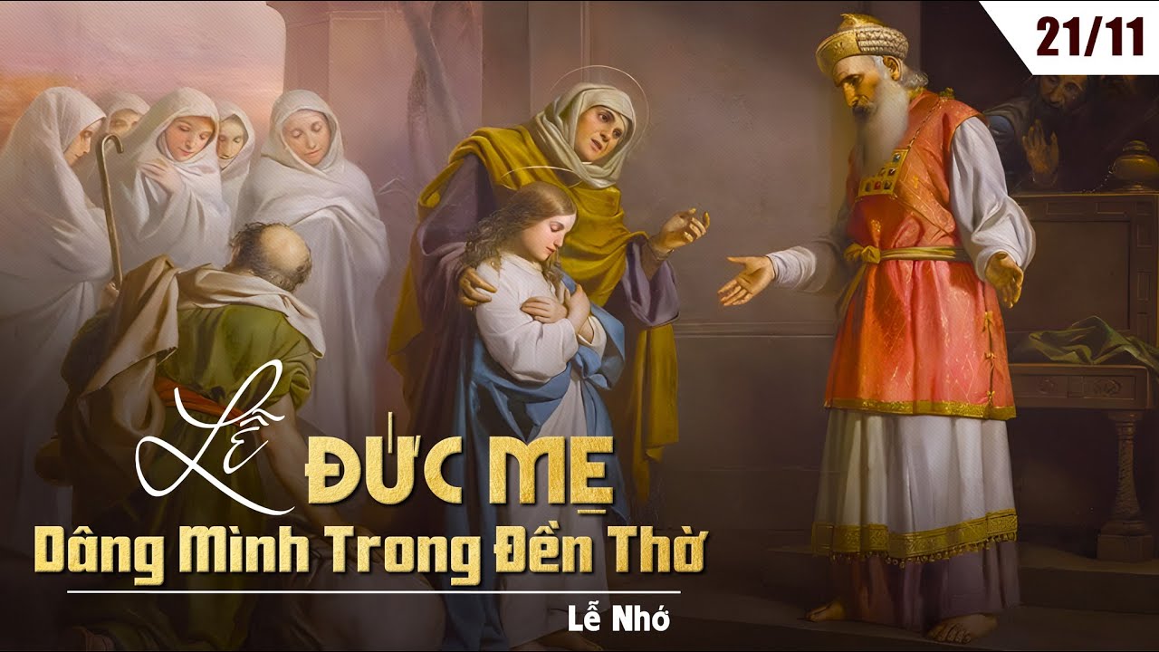 Hôm nay chúng ta cùng với Giáo Hội kính nhớ lễ Mẹ Maria dâng mình trong đền thờ. Thánh lễ này được cử hành ở Giêrusalem vào thế kỷ thứ 6. Một nhà thờ được xây dựng ở đây để tôn kính mầu nhiệm này. Giáo Hội Đông Phương dường như yêu thích thánh lễ này hơn. Thánh lễ này chỉ xuất hiện trong Giáo Hội Tây phương vào thế kỷ 11. Dù cho lễ này có lần biến mất khỏi lịch phụng vụ, vào thế kỷ 16, nó trở thành lễ cho toàn Giáo Hội. Giống như việc Đức Maria được sinh ra, việc Mẹ dâng mình trong đền thờ chỉ được đọc thấy trong văn chương nguỵ thư. Trong những gì được đón nhận như là trình thuật không mang tính lịch sử, Protoevangelium của Thánh Giacôbê nói cho chúng ta hay rằng Thánh Gioankim và Thánh Anna đã dâng hiến Mẹ Maria cho Thiên Chúa trong đền thánh khi Mẹ được 3 tuổi. Điều này được thực hiện để hoàn thành lời hứa với Thiên Chúa khi Anna trong thời gian không có con. Trong thánh lễ hôm nay, chúng ta cũng được mời gọi để dâng hiến chính mình cho Thiên Chúa hầu hoàn thành lời hứa với Thiên Chúa trong ngày rửa tội. Chúng ta để lời Chúa hướng dẫn chúng ta trong thái độ dâng hiến của mình.