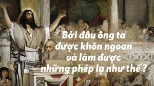 Trình thuật cho chúng ta biết việc giảng dạy của Chúa Giêsu trước tiên tạo nên nơi thính giả của Ngài một sự kinh ngạc: “Khi ấy, Đức Giêsu về quê, giảng dạy dân chúng trong hội đường của họ, khiến họ sửng sốt” (Mt 13:54). Nhưng sự kinh ngạc này dường như không mang vẻ thán phục, yêu mến mà là sự kinh ngạc mang tính nghi vấn: “Bởi đâu ông ta được khôn ngoan và làm được những phép lạ như thế? Ông không phải là con bác thợ sao? Mẹ của ông không phải là bà Maria; anh em của ông không phải là các ông Giacôbê, Giôxếp, Simôn và Giuđa sao? Và tất cả chị em của ông không phải là bà con lối xóm với chúng ta sao? Vậy bởi đâu ông ta được như thế?” (Mt 13:54-56). Trong những lời này, thính giả của Chúa Giêsu đã đặt câu hỏi về nguồn gốc của Ngài. Họ không thể vượt qua tương quan máu thịt để đi đến một tương quan cao hơn. Vì vậy, họ không biết được nguồn gốc thần linh của Chúa Giêsu. Chính điều này đã quyết định thái độ của họ đối với Chúa Giêsu: “Và họ vấp ngã vì Người” (Mt 13:57). Đúng vậy, người ta thường nói: Quen thuộc làm phát sinh sự khinh thường. Hay ông bà ta cũng có nói: Gần chùa gọi bụt bằng anh. Chính thái độ này đã làm những người ở quê của Chúa Giêsu không nhìn nhận sự hiện diện của Thiên Chúa trong Chúa Giêsu bởi vì họ chỉ để ý đến bối cảnh và nguồn gốc tầm thường thấp hèn của Ngài. Nguồn gốc và bối cảnh sống này cũng chính là nguồn gốc và bối cảnh của họ vì họ là người cùng quê với Chúa Giêsu. Như thế, khi khinh thường Chúa Giêsu, họ cũng khinh thường chính mình.