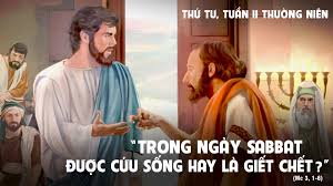 Trước thái độ thù nghịch và chống đối của những người “rình xem để tố cáo Ngài,” Chúa Giêsu bình thản hỏi họ về mục đích và ý nghĩa của ngày sa-bát: “Ngày sa-bát, được phép làm điều lành hay điều dữ, cứu mạng người hay giết người ?” (Mc 3:4). Câu hỏi này vượt ra ngoài giới hạn của luật mà thầy thông luật đặt ra. Qua câu hỏi này, Chúa Giêsu tuyên nhận mình là “Con Người” trong bài Tin Mừng hôm qua, Đấng có quyền trên ngày sa-bát, Đấng hiểu thấu ý nghĩa và mục đích của ngày sa-bát là để cứu sống và làm lành. Trái ngược với các thầy thông luật, Chúa Giêsu muốn khẳng định cho họ rằng: Làm điều lành và cứu sống không bị giới hạn bởi thời gian và không gian. Nói cách khác, đừng chậm trễ trong việc làm lành và cứu chữa anh chị em mình. Nếu chúng ta có thể làm một việc tốt cho nhau, hãy làm ngay, đừng đợi đến ngày mai, vì chúng ta không biết chúng ta hoặc người khác còn sống đến ngày mai hay không. Hãy yêu thương và tha thứ ngay, đừng đợi đến lúc quá muộn để hối hận cả đời!