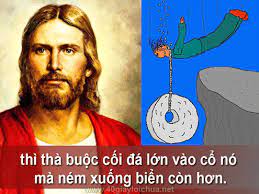 “Ai làm cớ cho một trong những kẻ bé mọn đang tin đây phải sa ngã, thì thà buộc cối đá lớn vào cổ nó mà ném xuống biển còn hơn. Nếu tay anh làm cớ cho anh sa ngã, thì chặt nó đi; thà cụt một tay mà được vào cõi sống còn hơn là có đủ hai tay mà phải sa hoả ngục, phải vào lửa không hề tắt. [ ] Nếu chân anh làm cớ cho anh sa ngã, thì chặt nó đi; thà cụt một chân mà được vào cõi sống còn hơn là có đủ hai chân mà bị ném vào hoả ngục. [ ] Nếu mắt anh làm cớ cho anh sa ngã, thì móc nó đi; thà chột mắt mà được vào Nước Thiên Chúa còn hơn là có đủ hai mắt mà bị ném vào hoả ngục, nơi giòi bọ không hề chết và lửa không hề tắt. Quả thật, ai nấy sẽ được luyện bằng lửa như thể ướp bằng muối. Muối là cái gì tốt. Nhưng muối mà hết mặn, thì anh em sẽ lấy gì ướp cho mặn lại? Anh em hãy giữ muối trong lòng anh em, và sống hoà thuận với nhau.”
