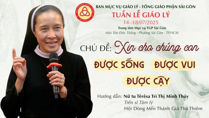 Linh mục Phêrô Nguyễn Văn Hiền đã đúc kết phần thuyết trình của nữ tu Têrêsa Trì Thị Minh Thúy (Tổng Phụ trách Hội dòng MTG Thủ Thiêm) như trên trong ngày thứ hai của Tuần lễ Giáo lý 2025.