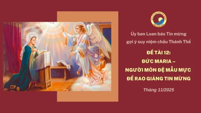 Đức Maria không phải là người giảng thuyết, nhưng là người sống Tin Mừng cách sâu xa nhất. Mẹ là môn đệ mẫu mực vì biết lắng nghe, đón nhận, mang Chúa đến cho người khác, và kiên trì bước đi cùng Hội Thánh trong hành trình sứ vụ.